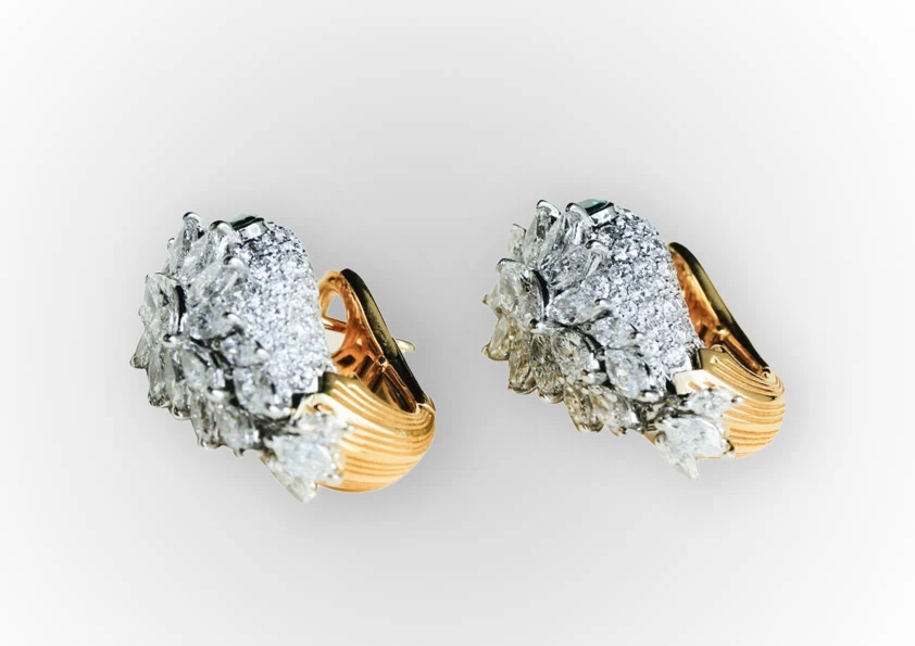 The earrings feature a unique design inspired by the serpent, which is considered a symbol of rebirth and transformation. The combination of platinum, yellow gold, diamonds, and emeralds makes them a statement piece that will elevate any outfit.