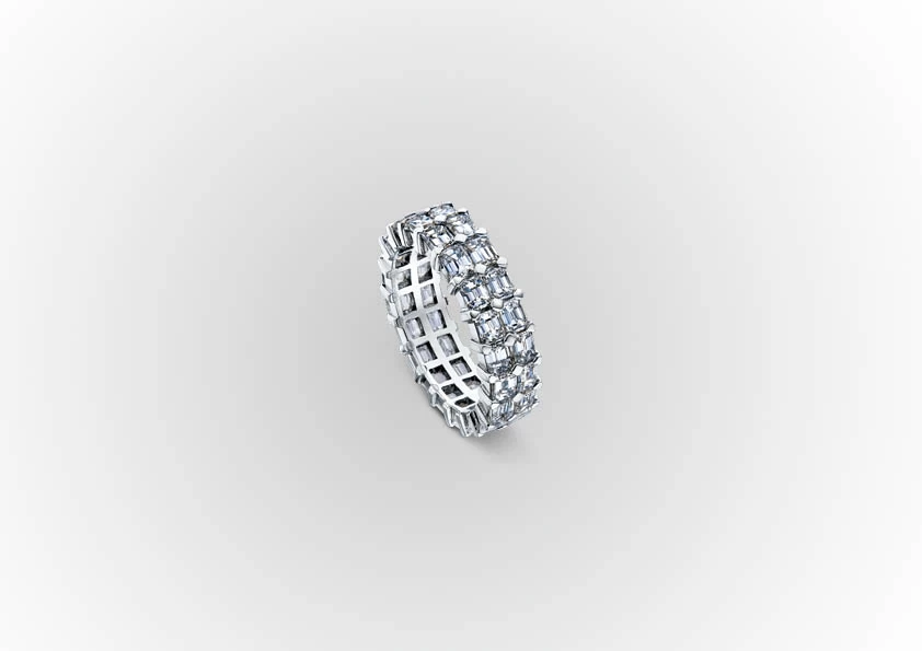 TWO LAYERED EMERALD CUT ETERNITY RING