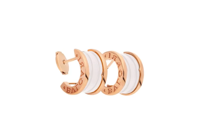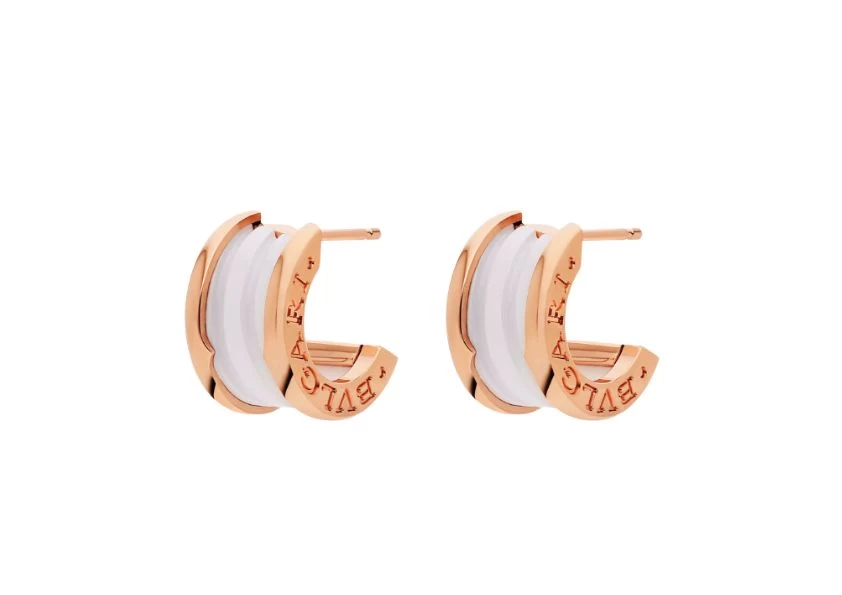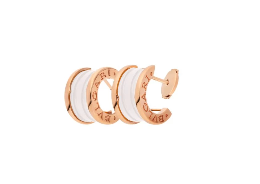 Introducing the exquisite Preloved:B.zero1 earrings in 18kt rose gold and white ceramic, a true masterpiece inspired by the iconic Colosseum. Bulgari's creative vision shines through in these stunning earrings, pushing the boundaries of traditional jewelry design.