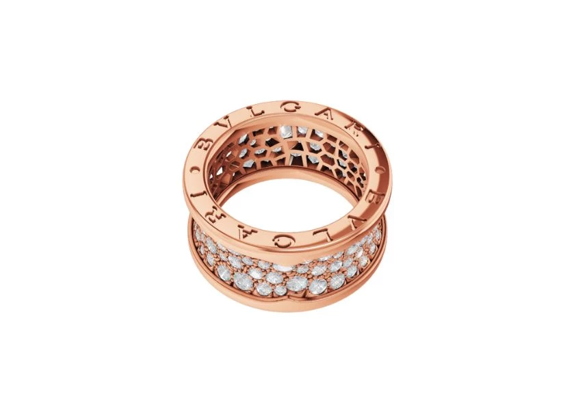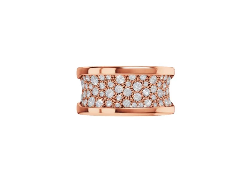 Introducing the exquisite Preloved:B.zero1 ring in 18 kt rose gold, adorned with dazzling pavé diamonds delicately set on its mesmerizing spiral. This exceptional piece draws its inspiration from the iconic Colosseum, the epitome of grandeur and architectural brilliance.