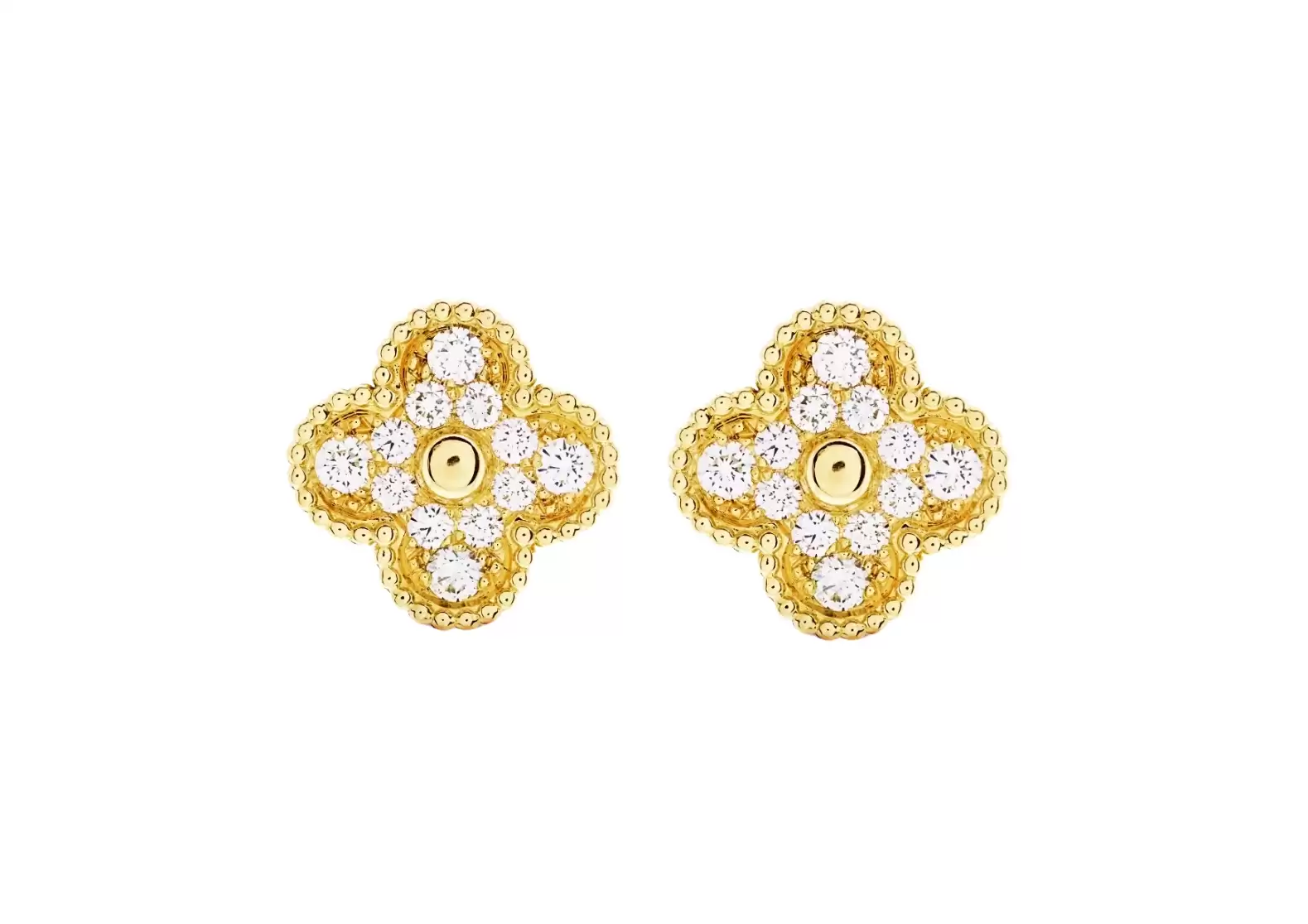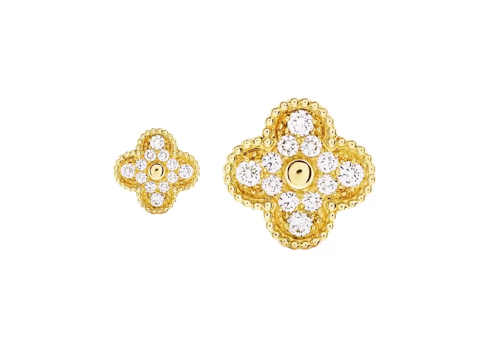 Introducing the exquisite Preloved: Vintage Alhambra Earrings by Van Cleef & Arpels. Crafted with utmost precision and attention to detail, these earrings are a true testament to timeless elegance. Made from 18K yellow gold, they exude a warm and radiant glow that beautifully complements any outfit. The centerpiece of these earrings is the mesmerizing round diamonds, carefully selected for their exceptional quality. With a diamond quality ranging from DEF, IF to VVS, each stone sparkles with unparalleled brilliance and clarity. Adorned with a total of 24 diamonds, these earrings boast a combined weight of 0.97 carats, adding a touch of luxury and sophistication to your ensemble. The Vintage Alhambra design, known for its delicate quatrefoil motif, adds a touch of vintage charm to these earrings. It effortlessly combines classic elegance with contemporary style, making it a versatile accessory for any occasion. Whether you're attending a formal event or simply adding a touch of glamour to your everyday look, these earrings are sure to make a statement. With the Preloved: Vintage Alhambra Earrings, you can embrace the allure of timeless beauty and indulge in the luxury of fine jewelry. Each piece is meticulously crafted to perfection, ensuring that you receive a truly exceptional accessory that will be treasured for years to come. Elevate your style and embrace the enchantment of these remarkable earrings.
