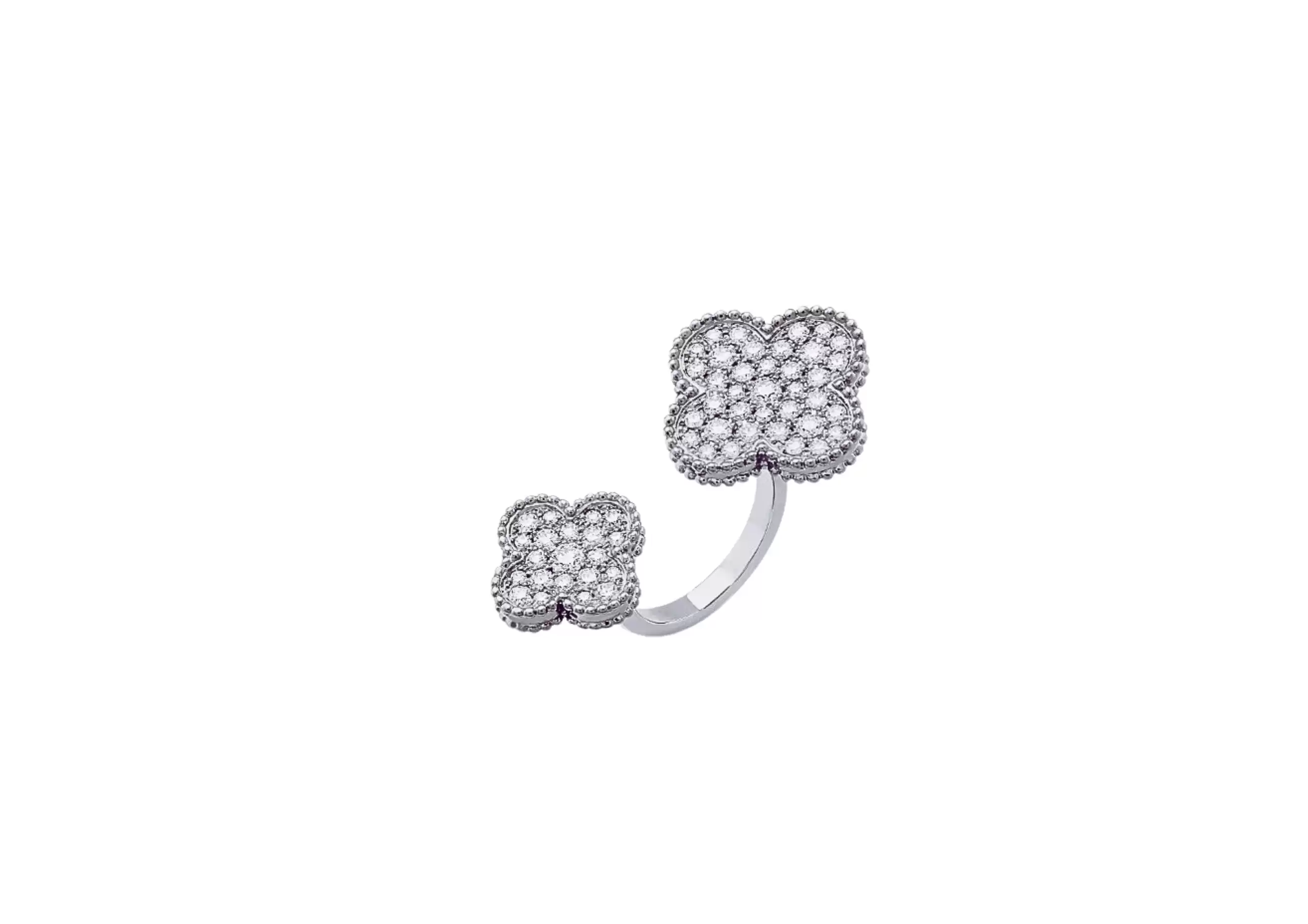Introducing the exquisite Preloved: Magic Alhambra Between the Finger ring by Van Cleef & Arpels. Crafted with utmost precision, this stunning piece is made from rhodium plated 18K white gold, ensuring its longevity and radiance. The ring is adorned with a total of 58 round diamonds, weighing a remarkable 1.6 carats. Each diamond is carefully selected for its exceptional quality, ranging from DEF color grade to IF and VVS clarity. This ensures that the diamonds sparkle brilliantly, captivating all who lay eyes on them. The Magic Alhambra Between the Finger ring is a true testament to Van Cleef & Arpels' commitment to timeless elegance and impeccable craftsmanship. Its unique design allows it to gracefully wrap around your finger, adding a touch of sophistication to any ensemble. With its rhodium plated 18K white gold and dazzling diamonds, this ring is a true statement piece that will elevate your style to new heights. Whether you're attending a glamorous event or simply want to add a touch of luxury to your everyday look, the Magic Alhambra Between the Finger ring is the perfect choice. Indulge in the allure of this extraordinary piece and experience the magic of Van Cleef & Arpels. Don't miss the opportunity to own this remarkable ring. Order now and embrace the beauty that Preloved: Magic Alhambra Between the Finger ring brings to your life.