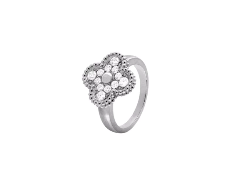 Introducing the exquisite Preloved: Vintage Alhambra Ring by Van Cleef & Arpels. Crafted with utmost precision, this timeless piece showcases the perfect blend of elegance and sophistication. Made with rhodium plated 18K white gold, it exudes a luxurious and radiant aura.