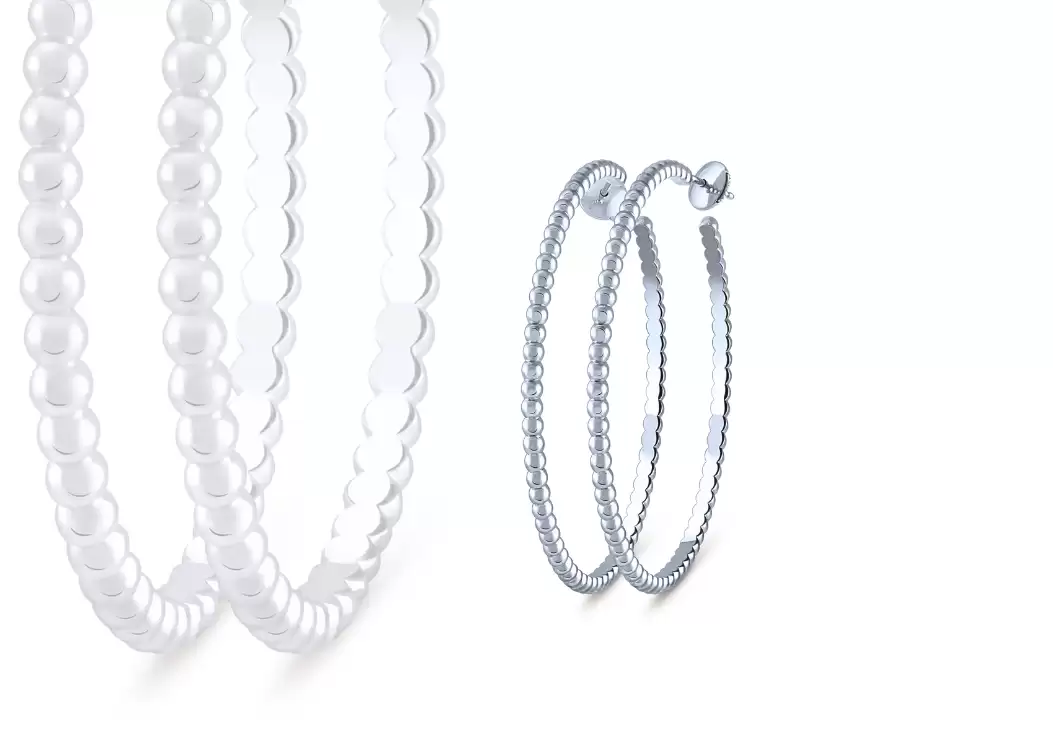The small model of these earrings showcases the perfect balance between elegance and sophistication. Each hoop is adorned with delicate pearls of gold, adding a touch of timeless beauty to your ensemble.