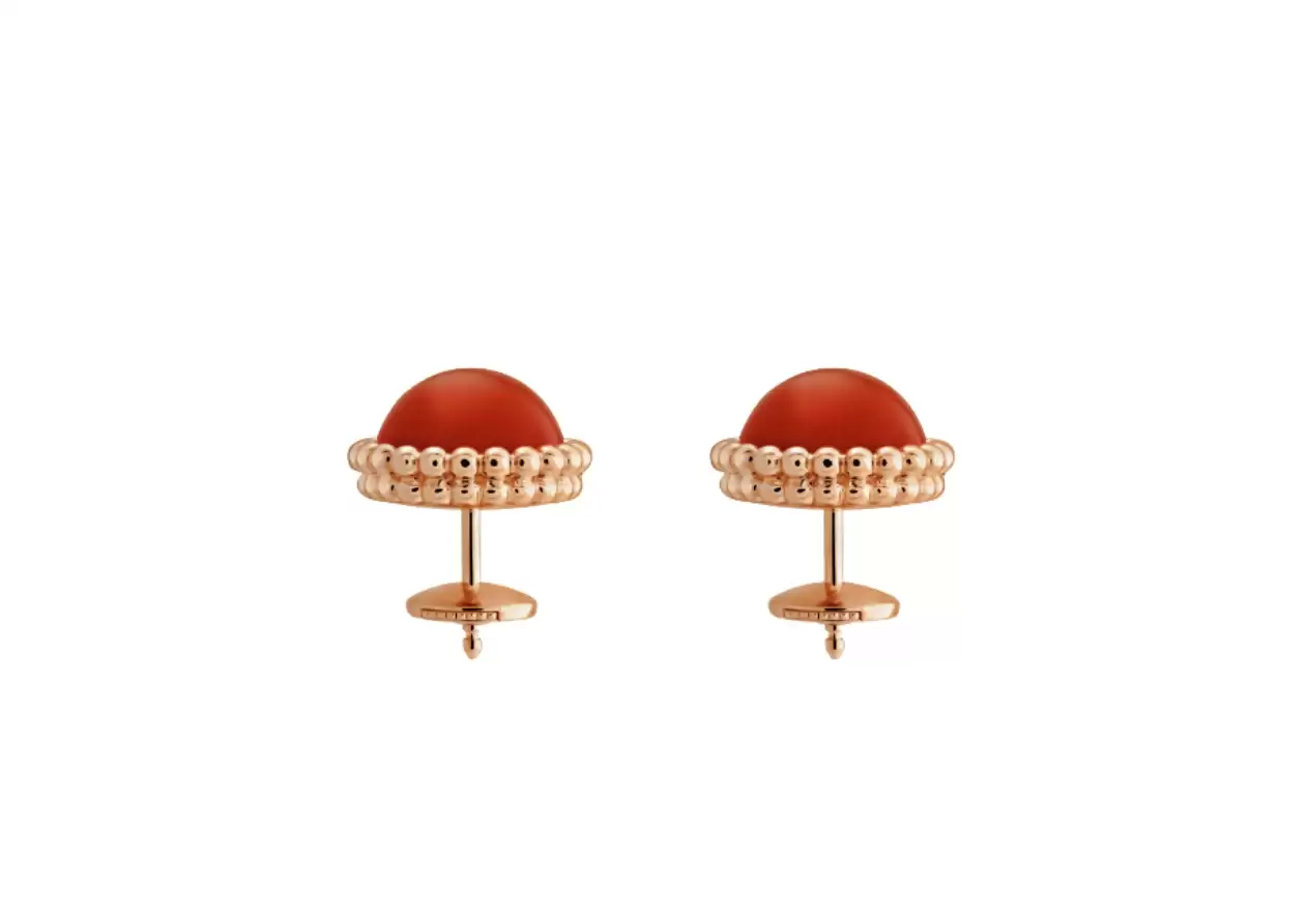The Perlée couleurs earrings are a true testament to the brand's exceptional craftsmanship and attention to detail. The 18K rose gold setting beautifully complements the vibrant carnelian stones, creating a harmonious blend of luxury and sophistication.