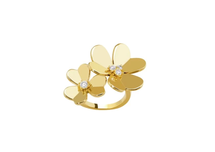 Introducing the exquisite Preloved: Frivole Between the Finger ring by Van Cleef & Arpels. Crafted with utmost precision, this stunning ring showcases the perfect blend of elegance and sophistication. Made from 18K yellow gold, it exudes a radiant glow that complements any attire. Adorned with four dazzling round diamonds, totaling 0.25 carats, this ring is a true symbol of luxury. The diamond quality ranges from DEF, ensuring exceptional clarity and brilliance, to IF, guaranteeing flawless beauty. With a clarity that surpasses even VVS standards, each diamond sparkles with unparalleled radiance. The Frivole Between the Finger ring is designed to captivate attention. Its unique and contemporary style allows it to be worn between the fingers, making it a distinctive and eye-catching piece. Whether for a special occasion or everyday wear, this ring effortlessly adds a touch of glamour to any ensemble. With its timeless design and exceptional craftsmanship, the Preloved: Frivole Between the Finger ring is a true testament to Van Cleef & Arpels' legacy of creating extraordinary jewelry. Indulge in the allure of this remarkable piece and elevate your style to new heights.