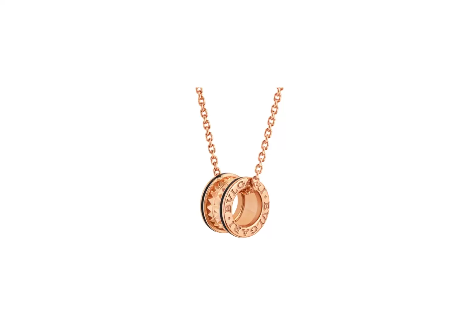 Introducing the Rock Necklace with 18kt Rose Gold Pendant, adorned with studded spiral black ceramic inserts on the edges and an 18kt rose gold chain. Drawing inspiration from the iconic Colosseum, B.zero1 Rock is a true testament to Bvlgari's unrivaled creativity and daring attitude. Prepare to be captivated by the audacious design of this groundbreaking necklace. The distinctive spiral, reminiscent of the Colosseum's grand architecture, has been reimagined with an unexpected twist - gold studs that add a touch of rebelliousness to the piece. This fusion of classic elegance and contemporary edge showcases Bvlgari's unapologetic and visionary spirit. Crafted with the utmost precision and attention to detail, this necklace is a true work of art. The 18kt rose gold pendant exudes a luxurious allure, while the black ceramic inserts on the edges add a modern and sophisticated touch. The combination of these exquisite materials creates a harmonious blend of contrasting elements, resulting in a truly unique and mesmerizing piece of jewelry. Whether you're attending a glamorous event or simply want to make a bold statement, the Rock Necklace with 18kt Rose Gold Pendant is the perfect accessory to elevate any outfit. Its striking design and impeccable craftsmanship make it a true symbol of style and sophistication. Indulge in the allure of Bvlgari's iconic design with the B.zero1 Rock 18kt rose gold necklace with black ceramic. Embrace your individuality and showcase your fearless spirit with this extraordinary piece that pushes the boundaries of traditional jewelry aesthetics. Experience the power of self-expression and let this necklace become your ultimate style statement.