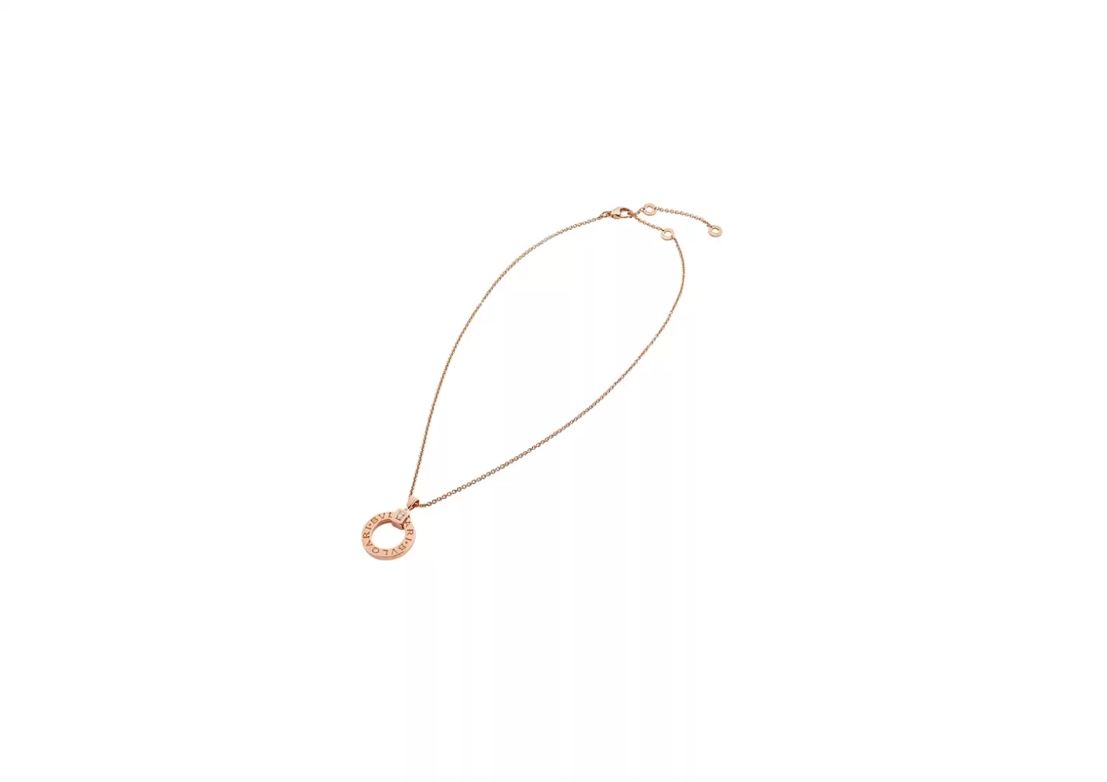 Meticulously crafted from 18 kt rose gold, both the chain and pendant exude a warm and alluring glow. The delicate diamond adorning the pendant adds a touch of sparkle, elevating the necklace to new heights of luxury and opulence.