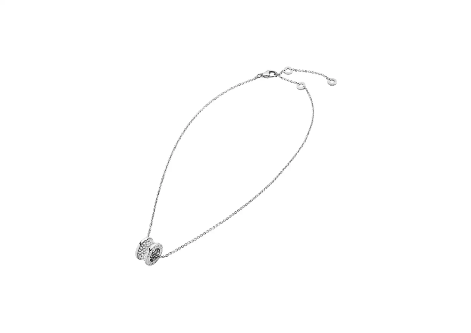 Introducing the exquisite Bvlgari Zero1 necklace with an 18 kt white gold chain and pendant in 18 kt white gold. Drawing inspiration from the iconic Colosseum, Bulgari's masterpiece, this necklace is a true testament to the brand's unparalleled creativity, pushing the boundaries of traditional jewelry design.