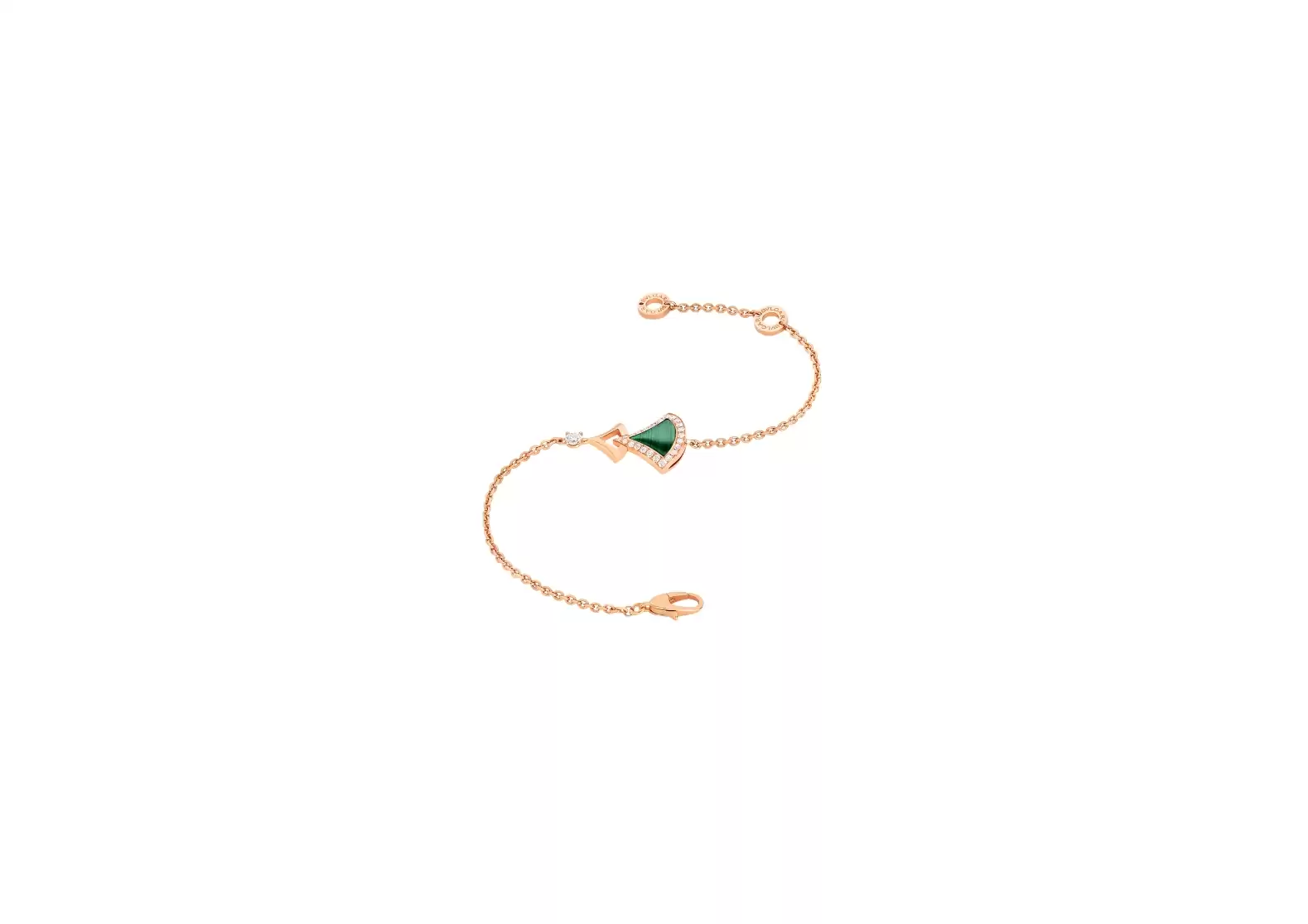 Experience the allure of Italian glamour and timeless beauty with the DIVAS' DREAM 18 kt rose gold bracelet, featuring a mesmerizing malachite insert and pavé diamonds.