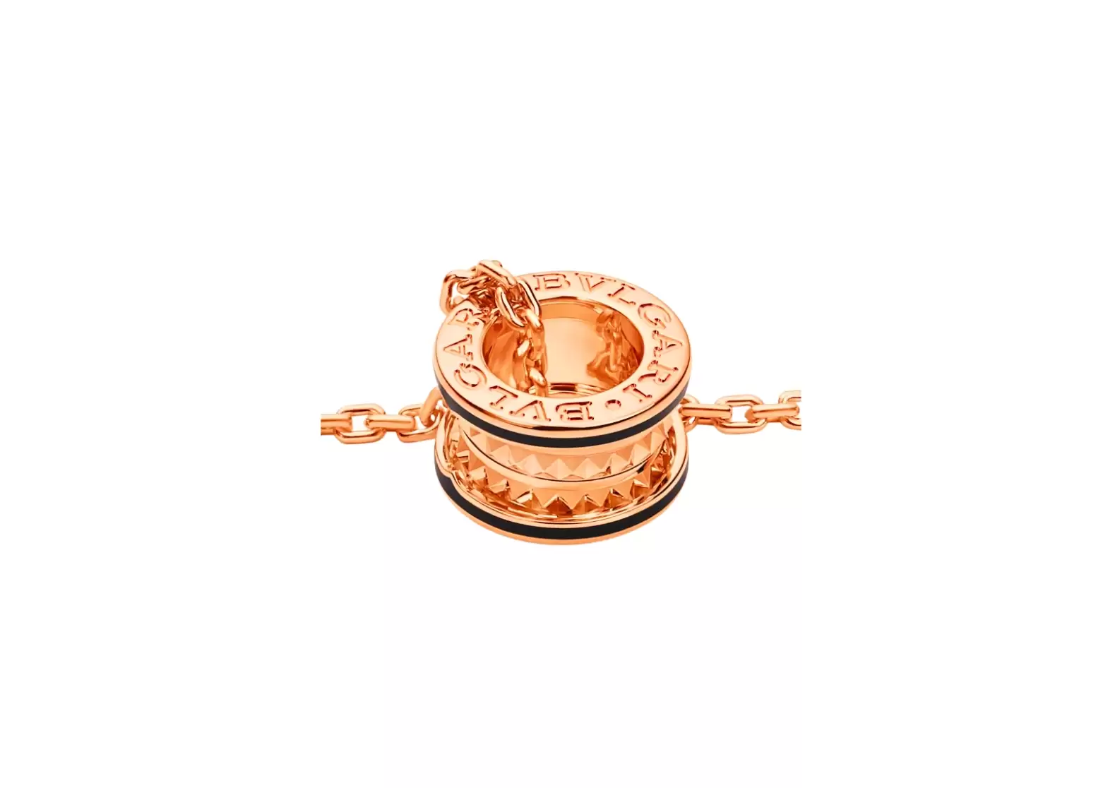 Introducing the Bvlgari Zero1 Rock pendant necklace in 18 kt rose gold with studs and black ceramic inserts. This extraordinary piece draws its inspiration from the magnificent Colosseum, the world's most renowned amphitheatre.