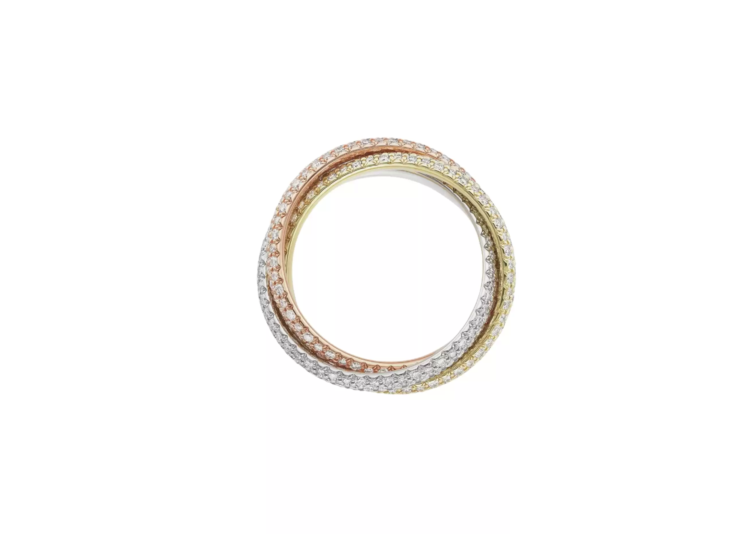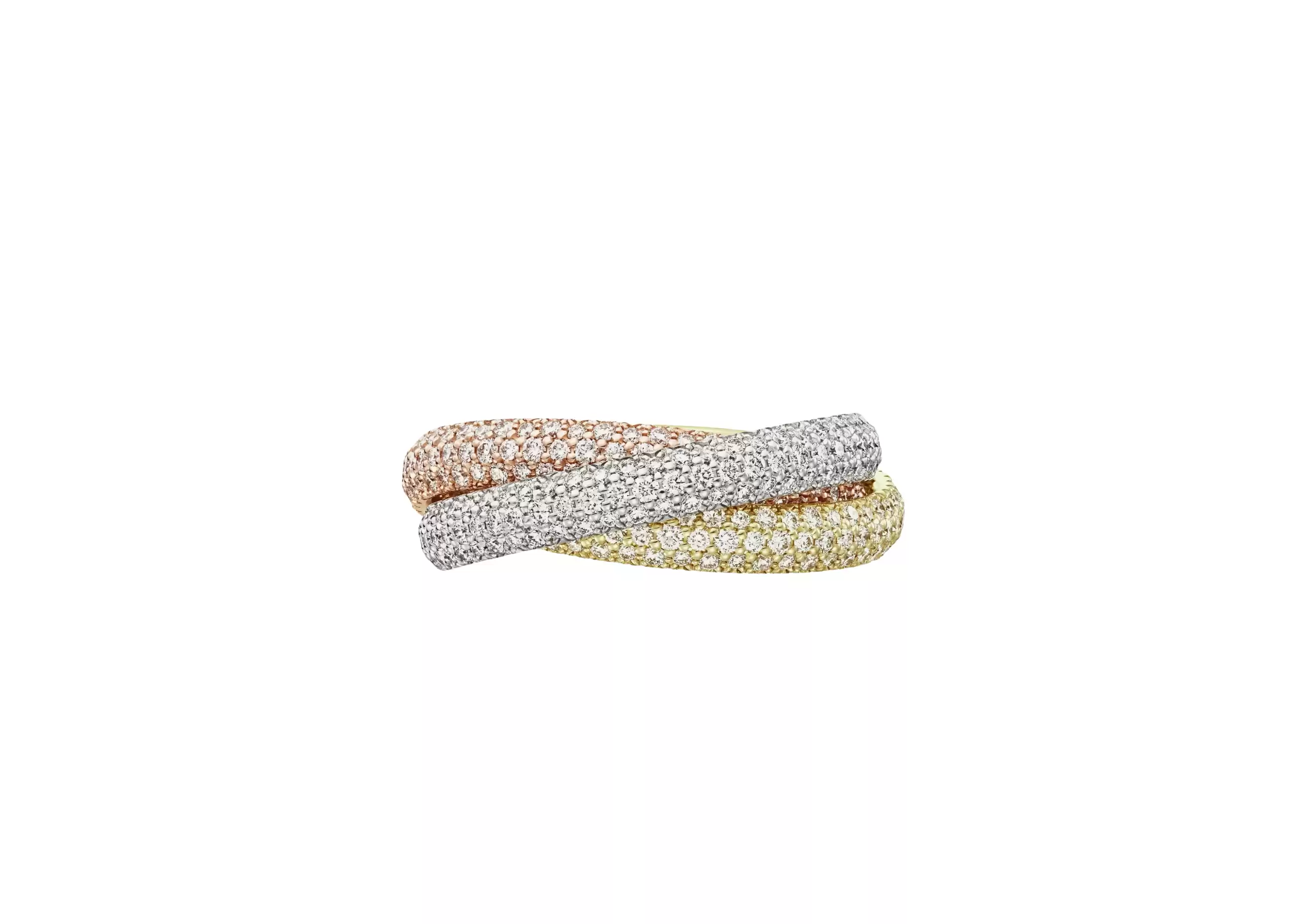 Enhancing its allure, the Trinity ring is adorned with a remarkable array of 312 brilliant-cut diamonds, totaling an impressive 1.38 carats. Each diamond has been carefully selected and skillfully set to radiate an enchanting sparkle, captivating all who behold it.