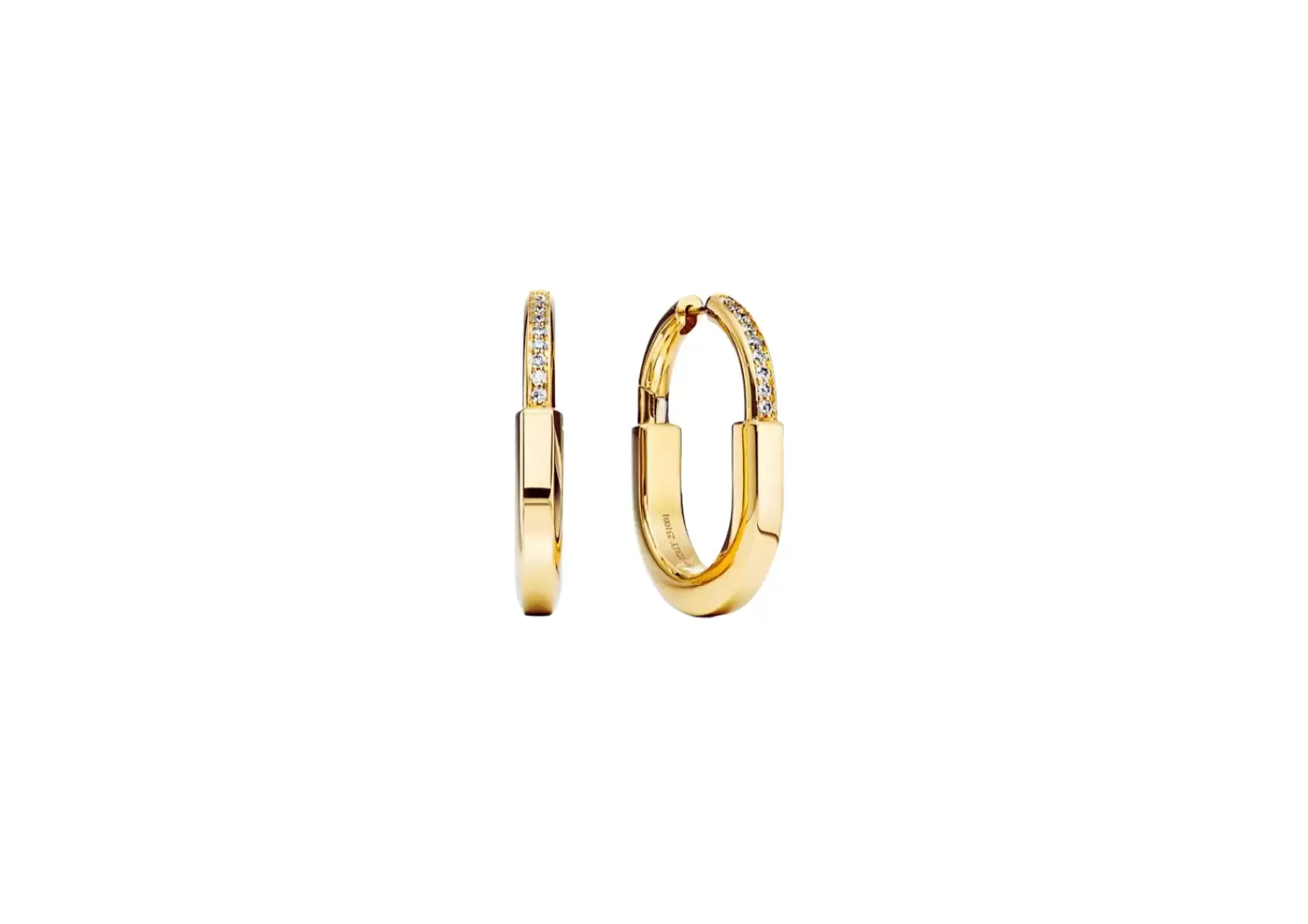 Introducing the Preloved:Tiffany Lock Earrings in Yellow Gold with Diamonds, Medium I 72342771. These exquisite earrings are more than just a piece of jewelry; they embody the essence of unity and inclusivity. Inspired by the power of togetherness, the Tiffany Lock collection celebrates the personal connections that shape our identities.