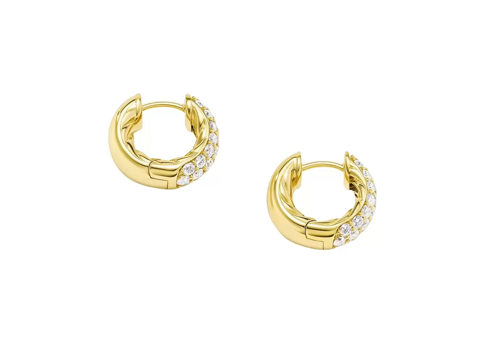 Made from 18-karat yellow gold, these earrings exude a timeless charm that effortlessly complements any outfit or occasion. The pavé-set diamonds, totaling an impressive 0.96 carats, add a dazzling sparkle that catches the light from every angle.