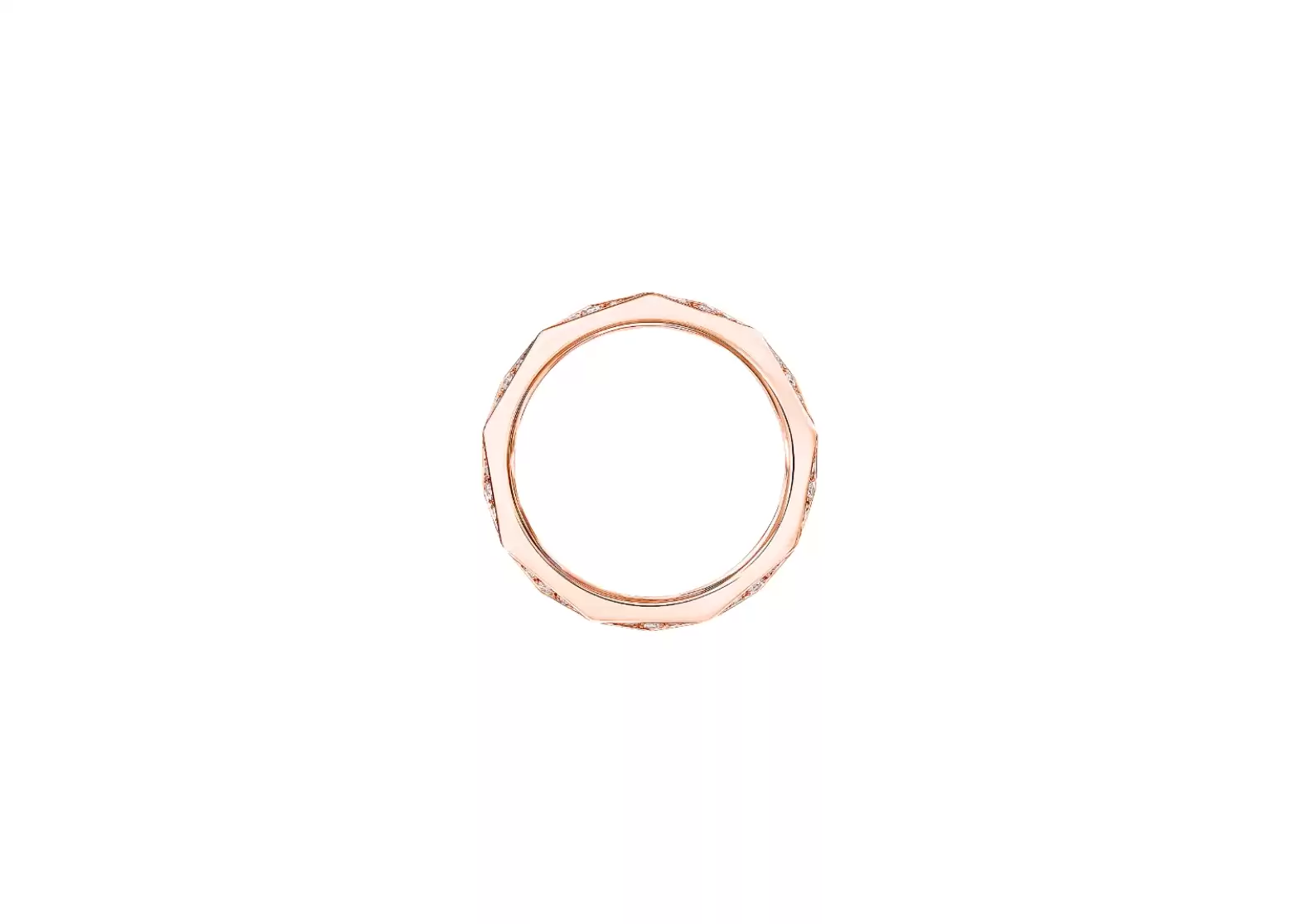 Introducing the Preloved: Laurence Graff Signature Diamond Band Rose Gold I RGR522. This exquisite piece is meticulously crafted from the finest rose gold, ensuring a luxurious and timeless appeal. The sleek and slender 2.3mm band is adorned with pavé diamonds, each showcasing exceptional brilliance through its angular facets.