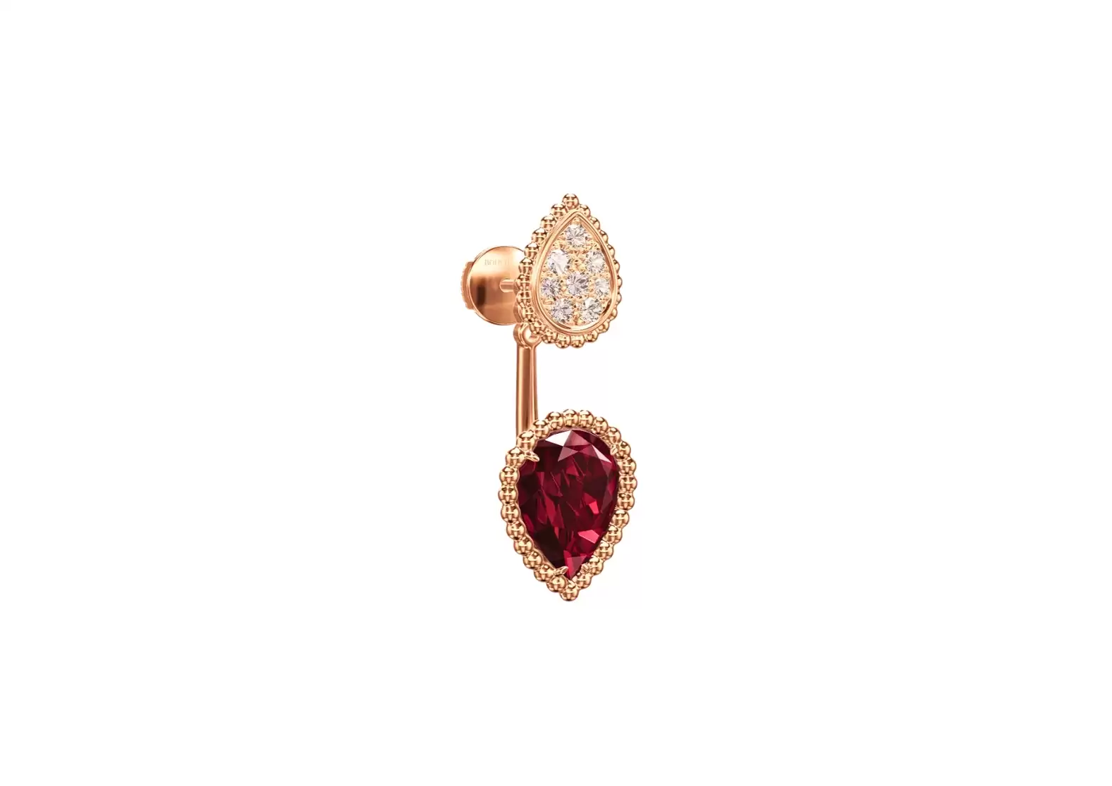 Introducing the exquisite Preloved Serpent Bohème Stud Earrings, adorned with both s and xs motifs. Crafted with utmost precision and attention to detail, these earrings are a true testament to timeless elegance. Made with premium materials, these earrings feature a stunning pear rhodolite garnet, weighing an impressive 2.20 carats. The rich, deep red hue of the garnet adds a touch of sophistication to any outfit. Additionally, eight round diamonds, totaling 0.17 carats, delicately accentuate the beauty of the centerpiece. The earrings are expertly crafted from 18K pink gold, adding a warm and luxurious touch to the overall design. The pink gold complements the gemstones perfectly, creating a harmonious and captivating aesthetic. With their unique s and xs motifs, these earrings are a true statement piece. The intricate design showcases the brand's dedication to craftsmanship and attention to detail. The serpent bohème motif symbolizes rebirth and eternal love, making these earrings a meaningful and sentimental choice. Designed with versatility in mind, these stud earrings can effortlessly transition from day to night, adding a touch of glamour to any occasion. Whether you're attending a formal event or simply want to elevate your everyday look, these earrings are the perfect choice. With their REF JCO01430, these Preloved Serpent Bohème Stud Earrings are a must-have addition to any jewelry collection. Embrace the allure of luxury and sophistication with these exquisite earrings that are sure to leave a lasting impression.