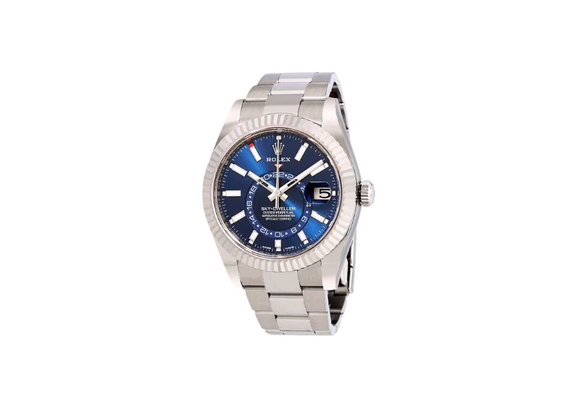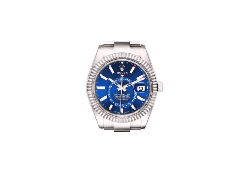 DescriptionThis 2022 unworn Sky-Dweller 42mm is made of polished stainless steel and white gold and is inspired by aviation styles. The baton hands move across the second-timezone dial using an automatic movement. |