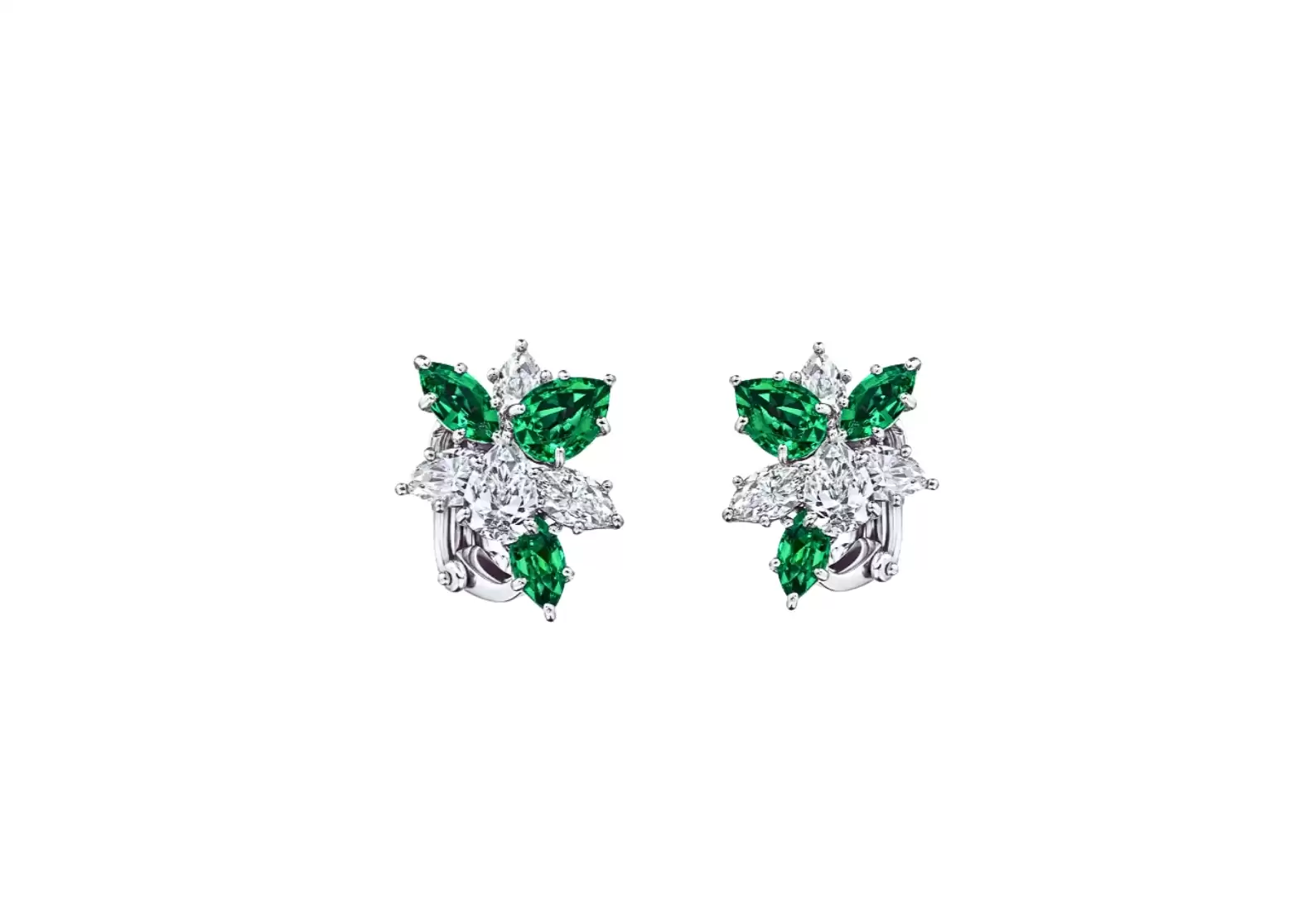 Introducing the exquisite Preloved: Winston Cluster Emerald and Diamond Earrings, a true masterpiece that effortlessly combines elegance and sophistication. Crafted with utmost precision, these earrings feature a stunning arrangement of 6 marquise and pear-shaped emeralds, collectively weighing approximately 2.65 carats.