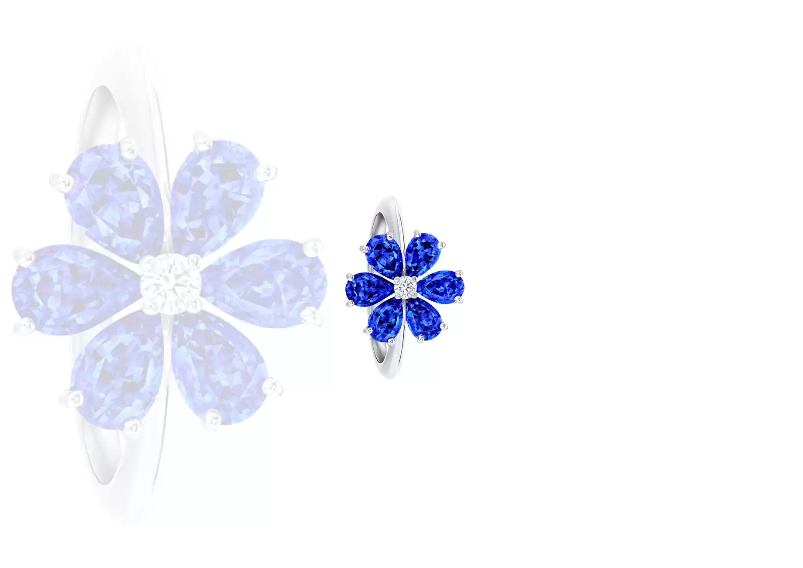 Introducing the exquisite Preloved: Forget-Me-Not Sapphire and Diamond Ring, a true embodiment of timeless elegance. This stunning piece features six pear-shaped sapphires, meticulously selected for their captivating allure, weighing a total of approximately 2.15 carats. Complementing the sapphires is a single round brilliant diamond, weighing approximately 0.05 carats, adding a touch of brilliance to this already enchanting design.