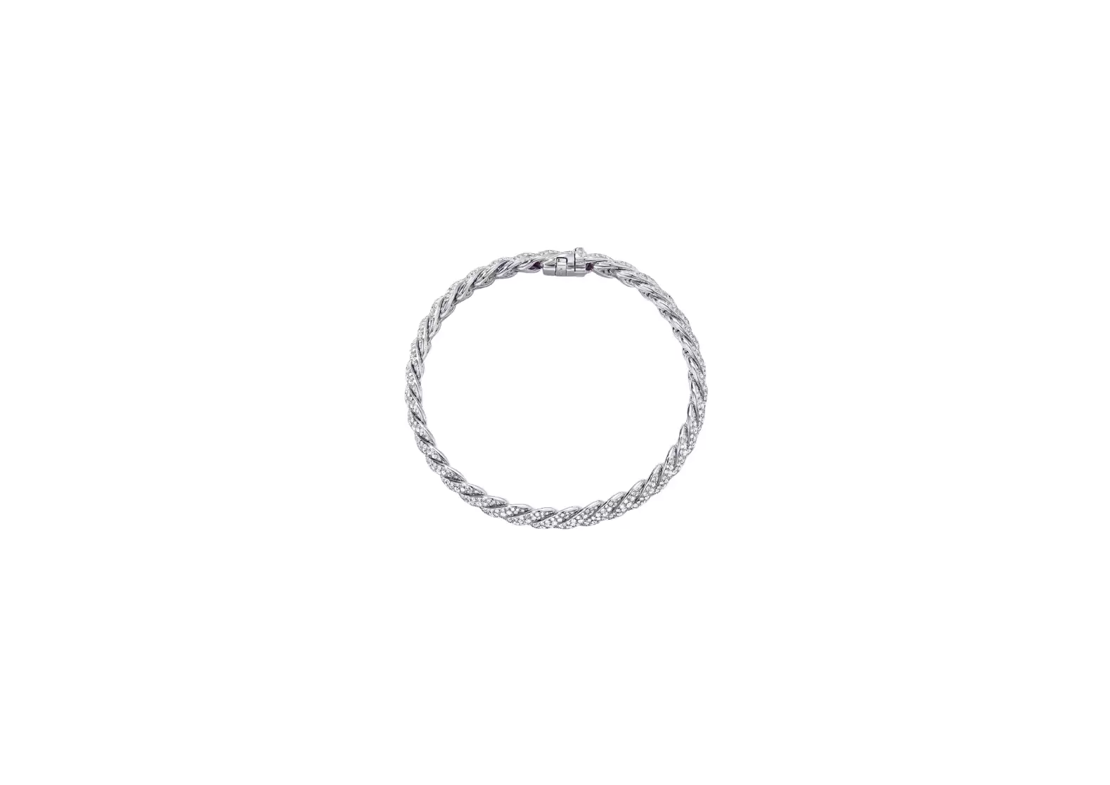 Introducing the exquisite Preloved Sculpted Cable Bracelet in Sterling Silver with Diamonds. Crafted with utmost precision and attention to detail, this bracelet is a true work of art. Made from 18-karat white gold, it exudes a timeless elegance that is sure to captivate all who lay eyes on it.