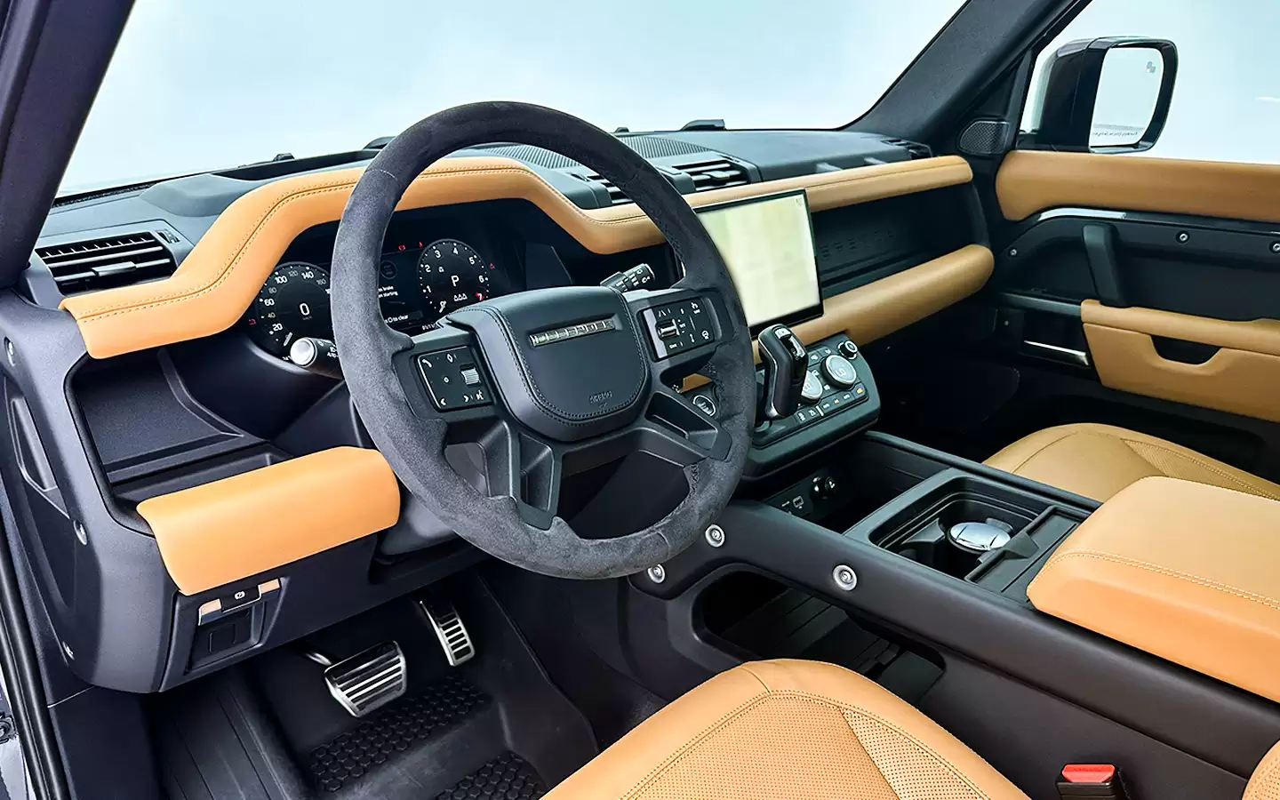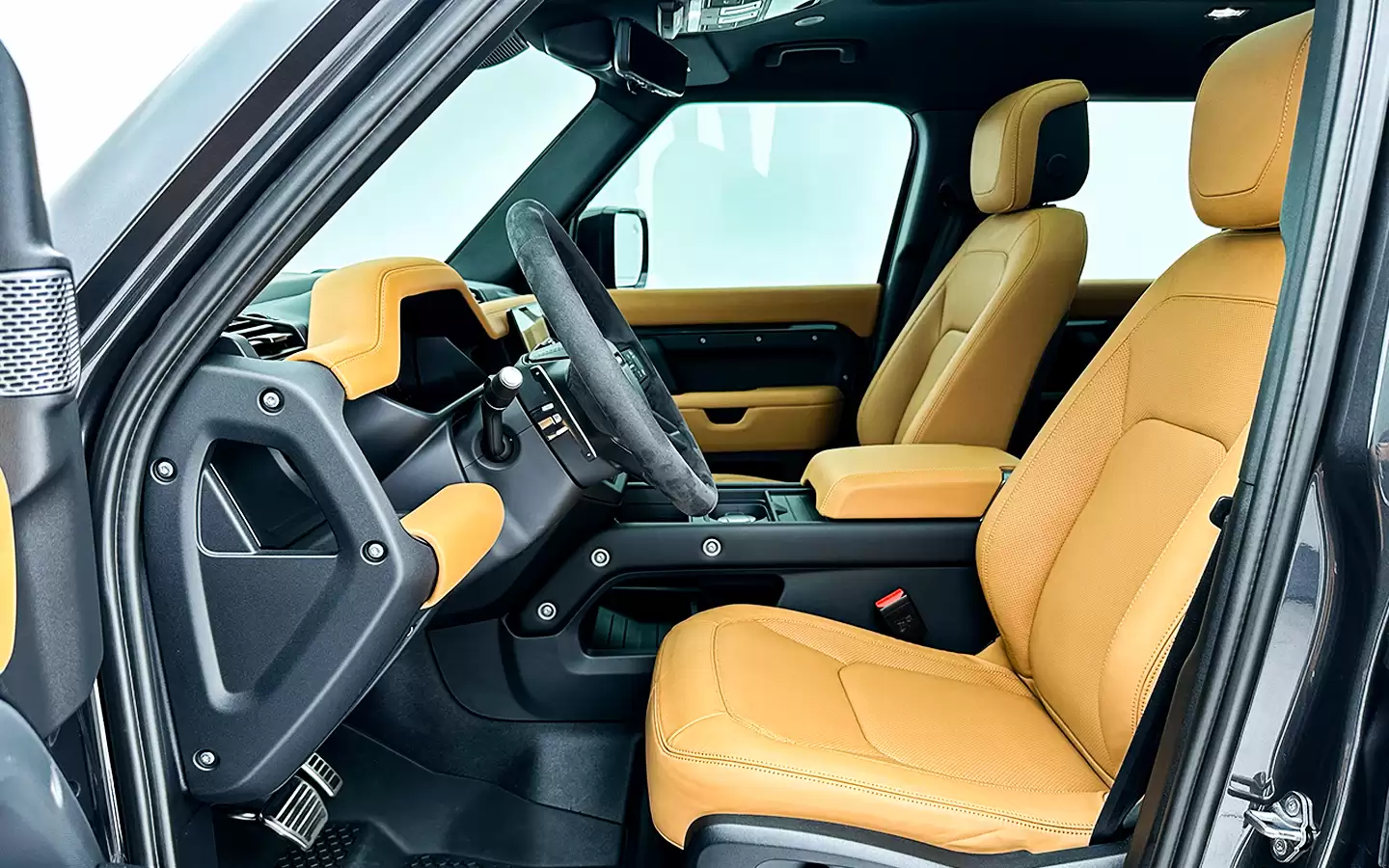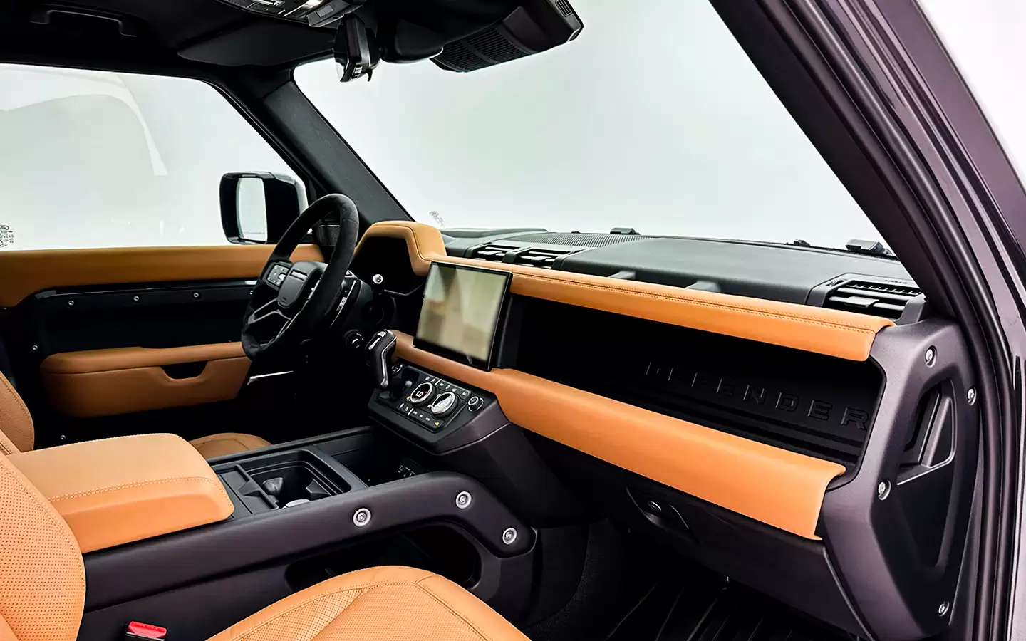 Step inside the Defender 110 Carpathian Edition and be greeted by the luxurious Vintage Tan interior. This combination of comfort and style creates an inviting and premium atmosphere, ensuring a pleasurable ride for both driver and passengers.