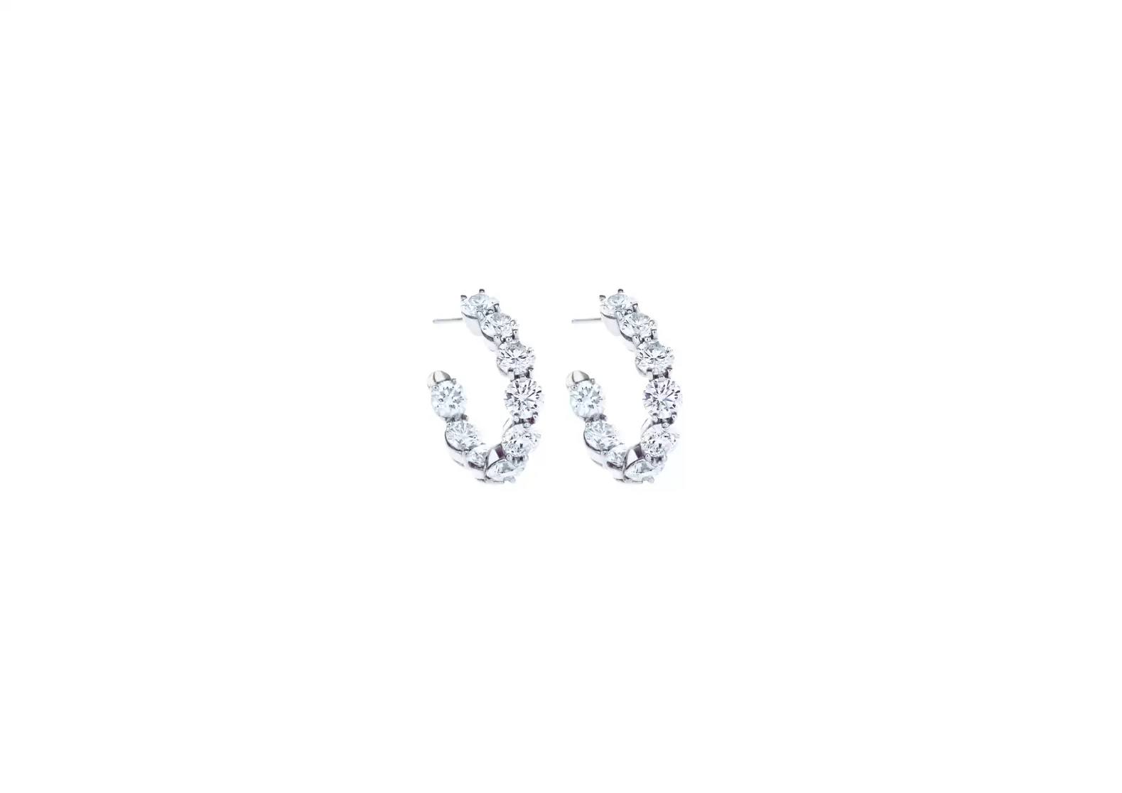 The round brilliant diamonds featured in these earrings have a combined carat total weight of 4.50, adding a luxurious touch to your ensemble. Each diamond is carefully selected for its exceptional cut, clarity, and color, ensuring maximum brilliance and fire. The inside-out design of the hoops allows the diamonds to be visible from all angles, creating a dazzling display of light and brilliance.