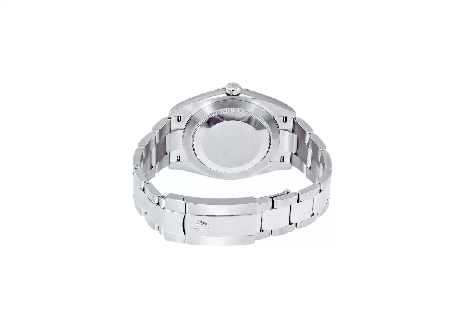 This Rolex Datejust 41 boasts exceptional water resistance, with a rating of 100 meters or 330 feet. The screw-down crown features the Twinlock double waterproofness system, enhancing its resistance to water. The screw-down case back further reinforces its durability.