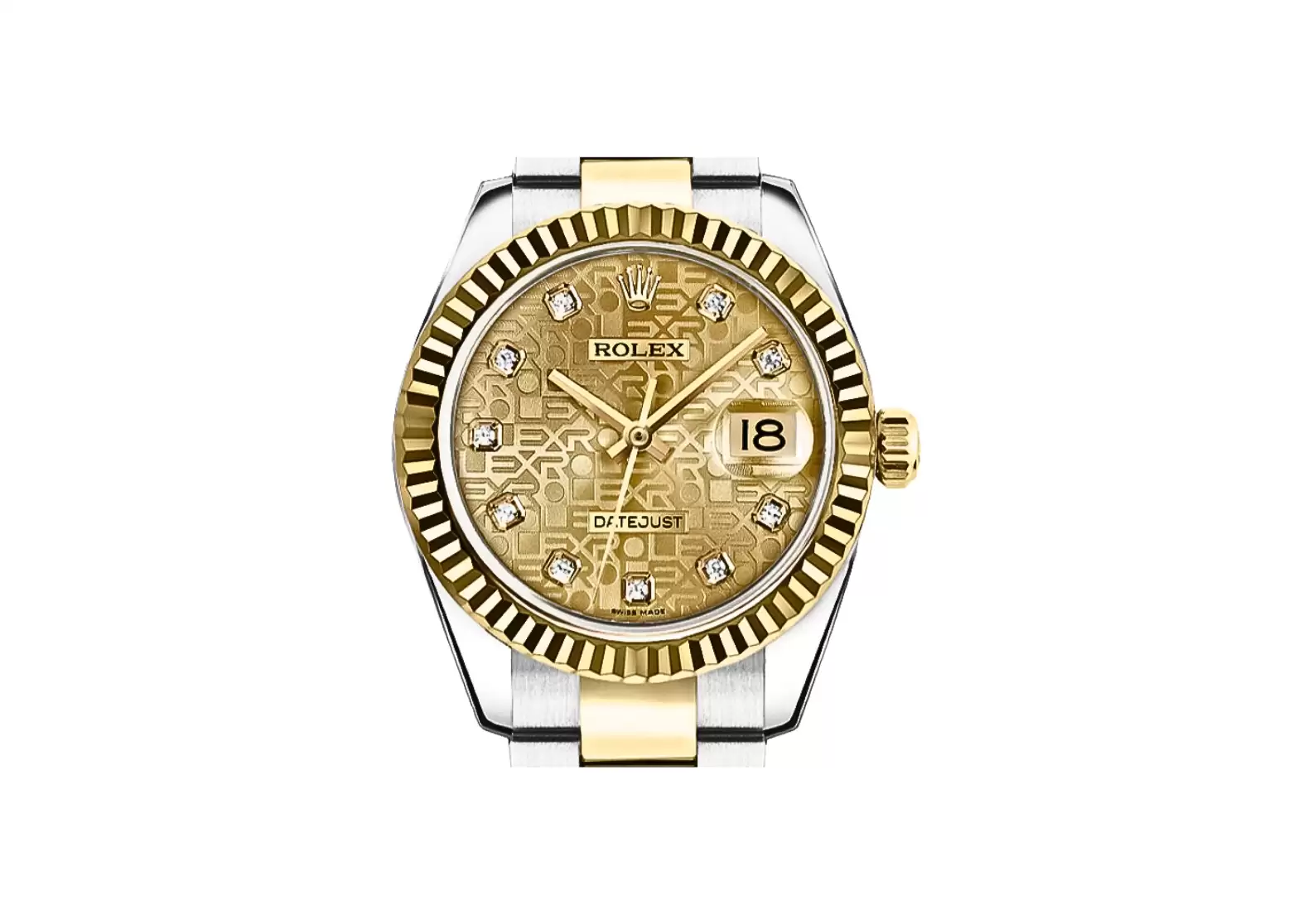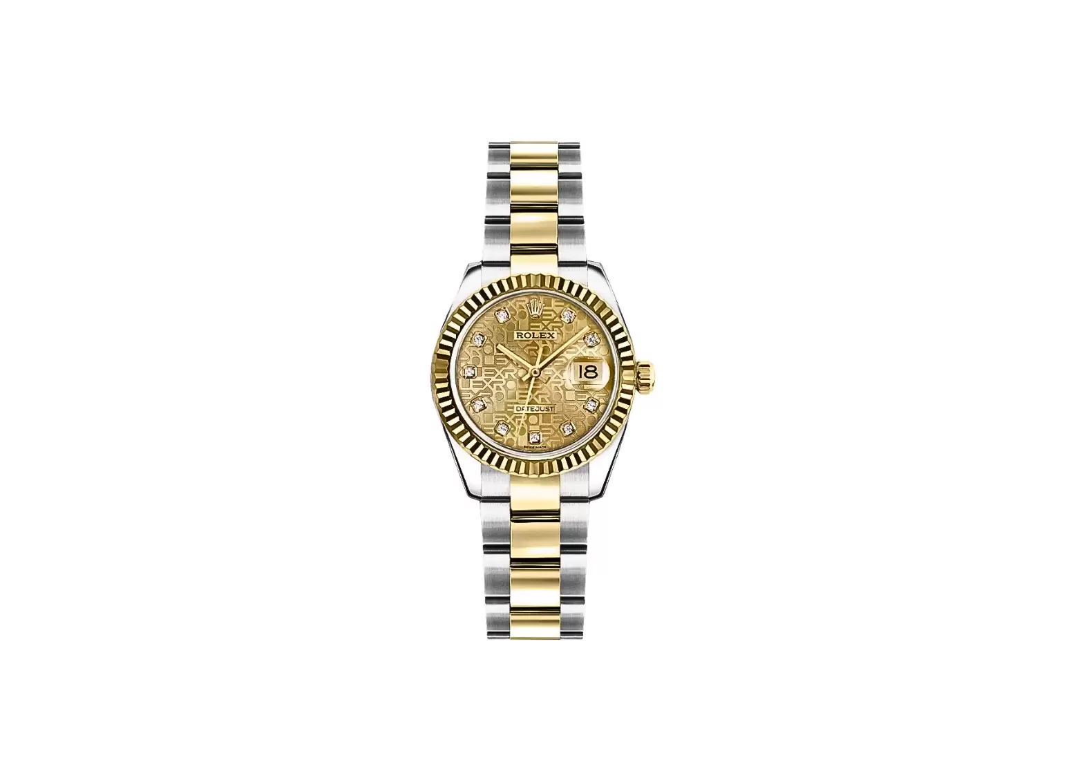 With its manufacturer serial numbers and Swiss Made label, you can be assured of the watch's authenticity and superior craftsmanship. The champagne jubilee dial is adorned with diamond hour markers, adding a touch of luxury to its design.