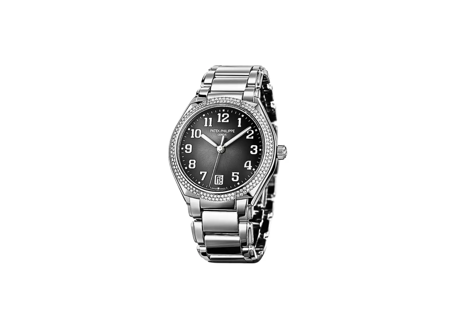 The Twenty~4 Automatic, a true embodiment of feminine elegance, introduces a round case for the first time in the collection. Crafted with precision, the steel version of this timepiece boasts a diamond-set bezel, adding a touch of sophistication to its design. Choose between a captivating blue sunburst or a subtle gray sunburst dial with black gradation, allowing you to express your personal style effortlessly.