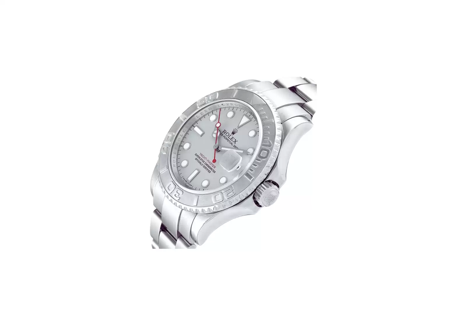 Introducing the Pre-owned: Rolex Yacht-Master 40 Silver Dial Chronometer Men's Watch 16622, a timepiece that exudes luxury and sophistication. Crafted with meticulous attention to detail, this watch is a true testament to Rolex's renowned craftsmanship. The Rolex Yacht-Master 40 16622 features a stainless steel case and oyster bracelet, ensuring durability and comfort. With a generous 40mm diameter, it effortlessly commands attention on any wrist. The platinum bezel adds a touch of elegance and refinement, elevating the overall aesthetic of the watch. Designed with practicality in mind, the silver dial of this timepiece is adorned with dot and index hour markers, allowing for enhanced visibility in any lighting conditions. Whether you're sailing the high seas or attending a formal event, this watch ensures you always make a bold statement. Equipped with an automatic chronometer-certified movement, the Rolex Yacht-Master 40 16622 guarantees precise timekeeping. Additionally, the date display at the 3 o'clock position adds convenience to your daily routine. Never miss an important appointment or occasion again. Safety is a top priority, which is why this watch features a deployment buckle. This ensures that your timepiece stays securely fastened to your wrist, providing peace of mind throughout your day. With its classic and timeless design, the Rolex Yacht-Master 40 16622 is not just a watch; it's a treasured accessory that will withstand the test of time. Whether you're a seasoned collector or a first-time Rolex owner, this timepiece is sure to become a cherished part of your collection. Indulge in the epitome of luxury and sophistication with the Pre-owned: Rolex Yacht-Master 40 Silver Dial Chronometer Men's Watch 16622. Elevate your style and make a lasting impression with this exquisite timepiece.