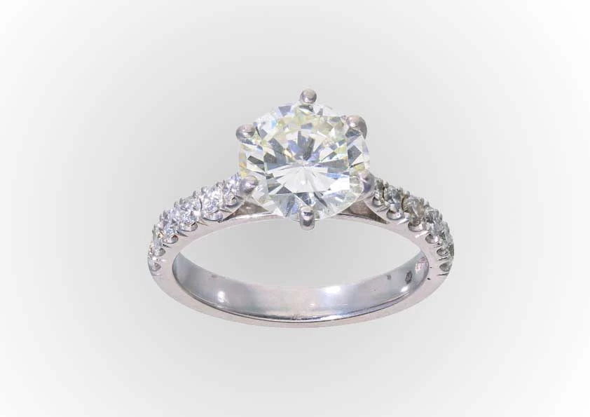 Crafted with utmost precision and attention to detail, this exquisite ring showcases a breathtaking 2.50-carat diamond, radiating brilliance and capturing the essence of everlasting love. The platinum band, renowned for its durability and lustrous shine, adds a touch of timeless elegance to this remarkable piece. The solitaire design, a symbol of purity and commitment, allows the diamond to take center stage, captivating all who lay their eyes upon it. Its mesmerizing sparkle and exceptional clarity evoke a sense of awe and admiration, making it a perfect choice for those seeking a truly extraordinary piece of jewelry.