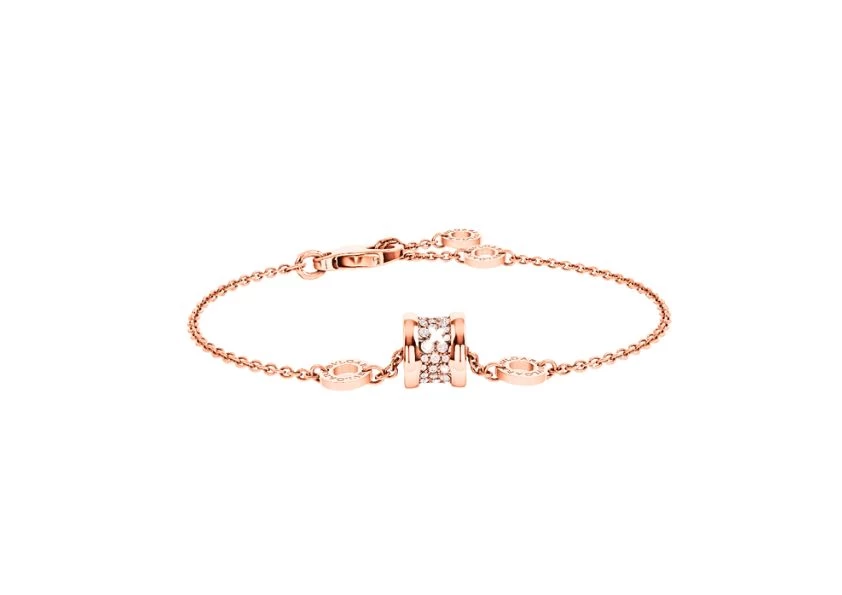 Made from 18 kt rose gold, this Preloved:B.ZERO1 bracelet exudes a captivating allure that is simply irresistible. Adorned with dazzling pavé diamonds, it sparkles with every movement, adding a touch of opulence to any ensemble. Its soft and flexible design ensures a comfortable fit, allowing you to effortlessly showcase your unique sense of style.