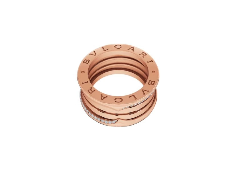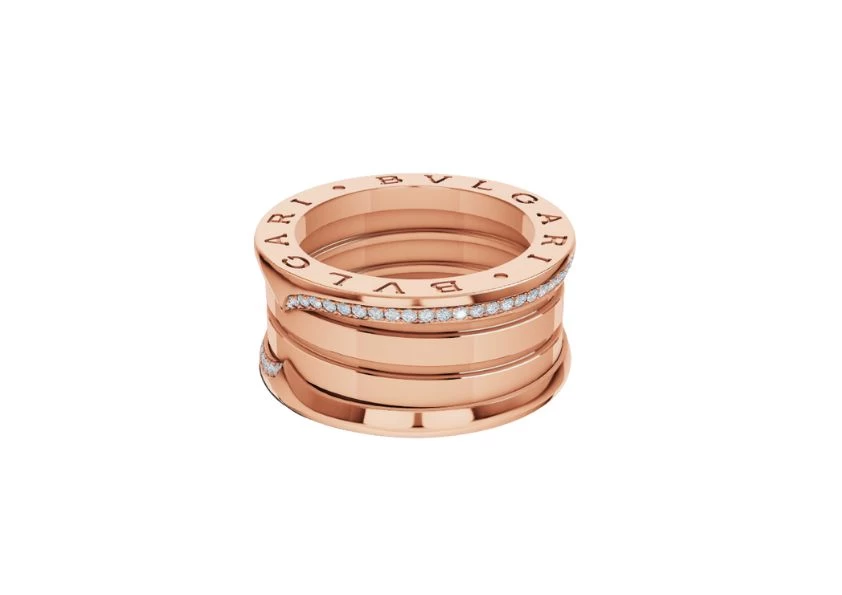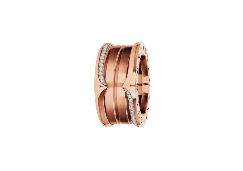 Introducing the exquisite Preloved: 18 kt rose gold three-band ring set with demi-pavé diamonds on the edges. Drawing inspiration from the iconic Colosseum, this ring is a true testament to Bulgari's unrivaled creativity and vision.