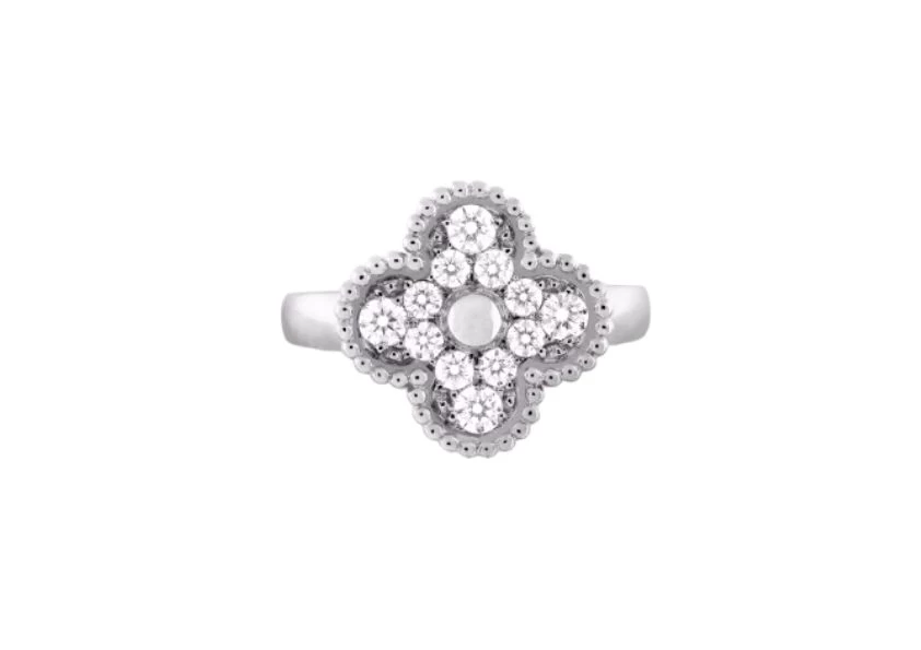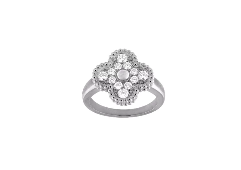 Introducing the exquisite Preloved: Vintage Alhambra Ring by Van Cleef & Arpels. Crafted with utmost precision, this timeless piece showcases the perfect blend of elegance and sophistication. Made with rhodium plated 18K white gold, it exudes a luxurious and radiant aura.