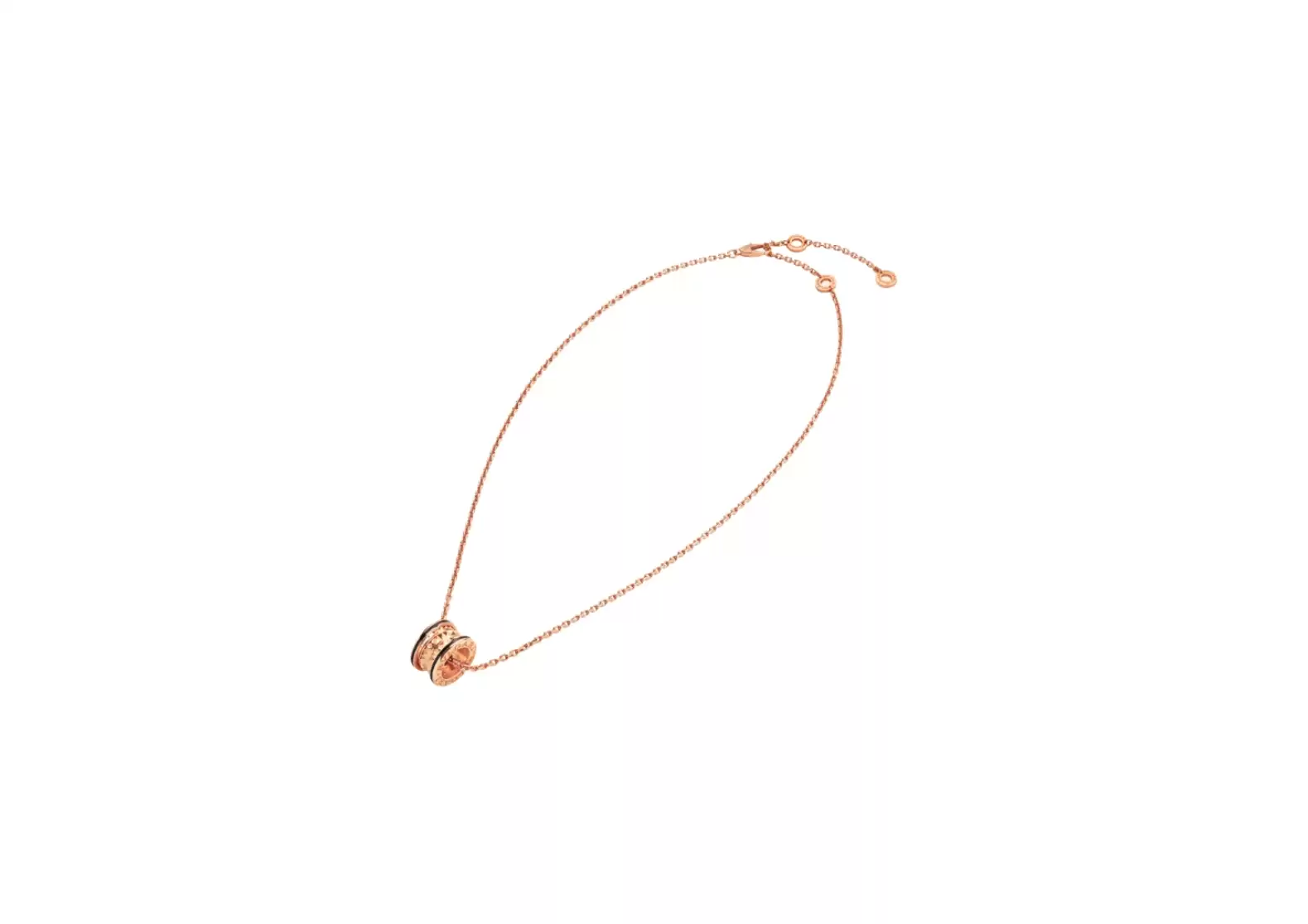 Introducing the Rock Necklace with 18kt Rose Gold Pendant, adorned with studded spiral black ceramic inserts on the edges and an 18kt rose gold chain. Drawing inspiration from the iconic Colosseum, B.zero1 Rock is a true testament to Bvlgari's unrivaled creativity and daring attitude. Prepare to be captivated by the audacious design of this groundbreaking necklace. The distinctive spiral, reminiscent of the Colosseum's grand architecture, has been reimagined with an unexpected twist - gold studs that add a touch of rebelliousness to the piece. This fusion of classic elegance and contemporary edge showcases Bvlgari's unapologetic and visionary spirit. Crafted with the utmost precision and attention to detail, this necklace is a true work of art. The 18kt rose gold pendant exudes a luxurious allure, while the black ceramic inserts on the edges add a modern and sophisticated touch. The combination of these exquisite materials creates a harmonious blend of contrasting elements, resulting in a truly unique and mesmerizing piece of jewelry. Whether you're attending a glamorous event or simply want to make a bold statement, the Rock Necklace with 18kt Rose Gold Pendant is the perfect accessory to elevate any outfit. Its striking design and impeccable craftsmanship make it a true symbol of style and sophistication. Indulge in the allure of Bvlgari's iconic design with the B.zero1 Rock 18kt rose gold necklace with black ceramic. Embrace your individuality and showcase your fearless spirit with this extraordinary piece that pushes the boundaries of traditional jewelry aesthetics. Experience the power of self-expression and let this necklace become your ultimate style statement.