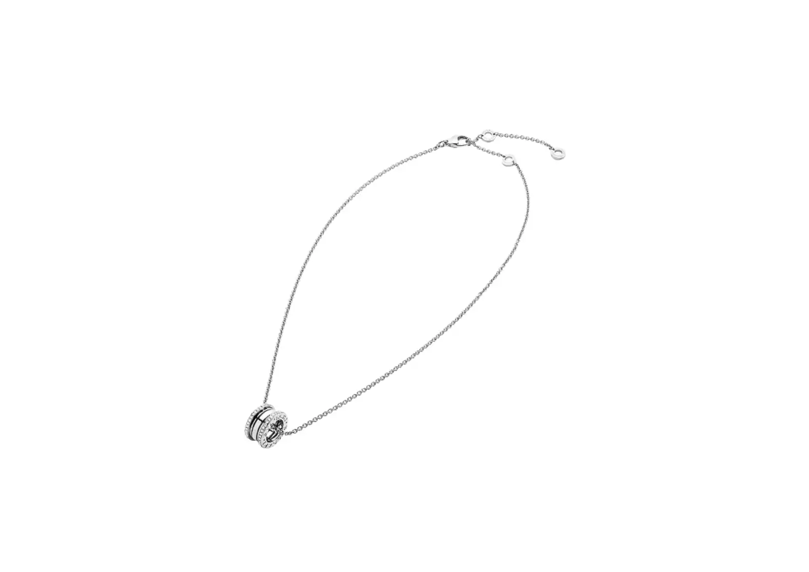The B.zero1 necklace with 18 kt white gold chain and 18 kt white gold round pendant set is more than just a piece of jewellery; it is an embodiment of Bulgari's legacy and passion for pushing boundaries. Elevate your style and make a lasting impression with this captivating necklace.
