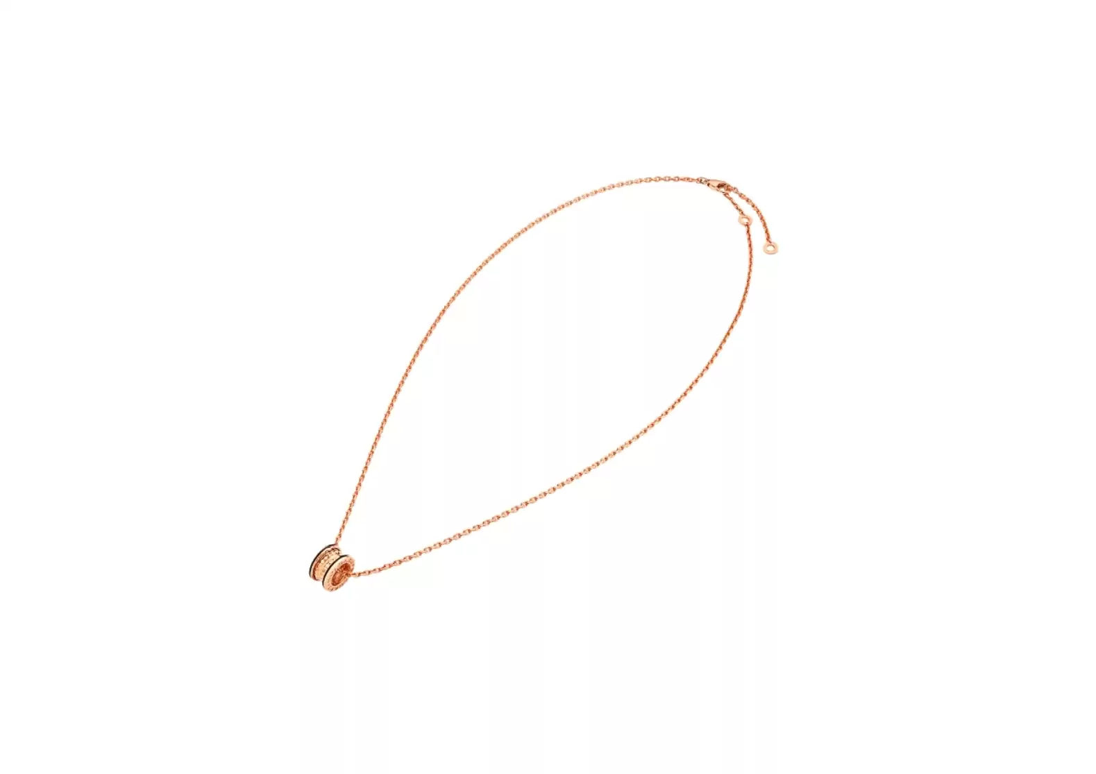 Introducing the Bvlgari Zero1 Rock pendant necklace in 18 kt rose gold with studs and black ceramic inserts. This extraordinary piece draws its inspiration from the magnificent Colosseum, the world's most renowned amphitheatre.
