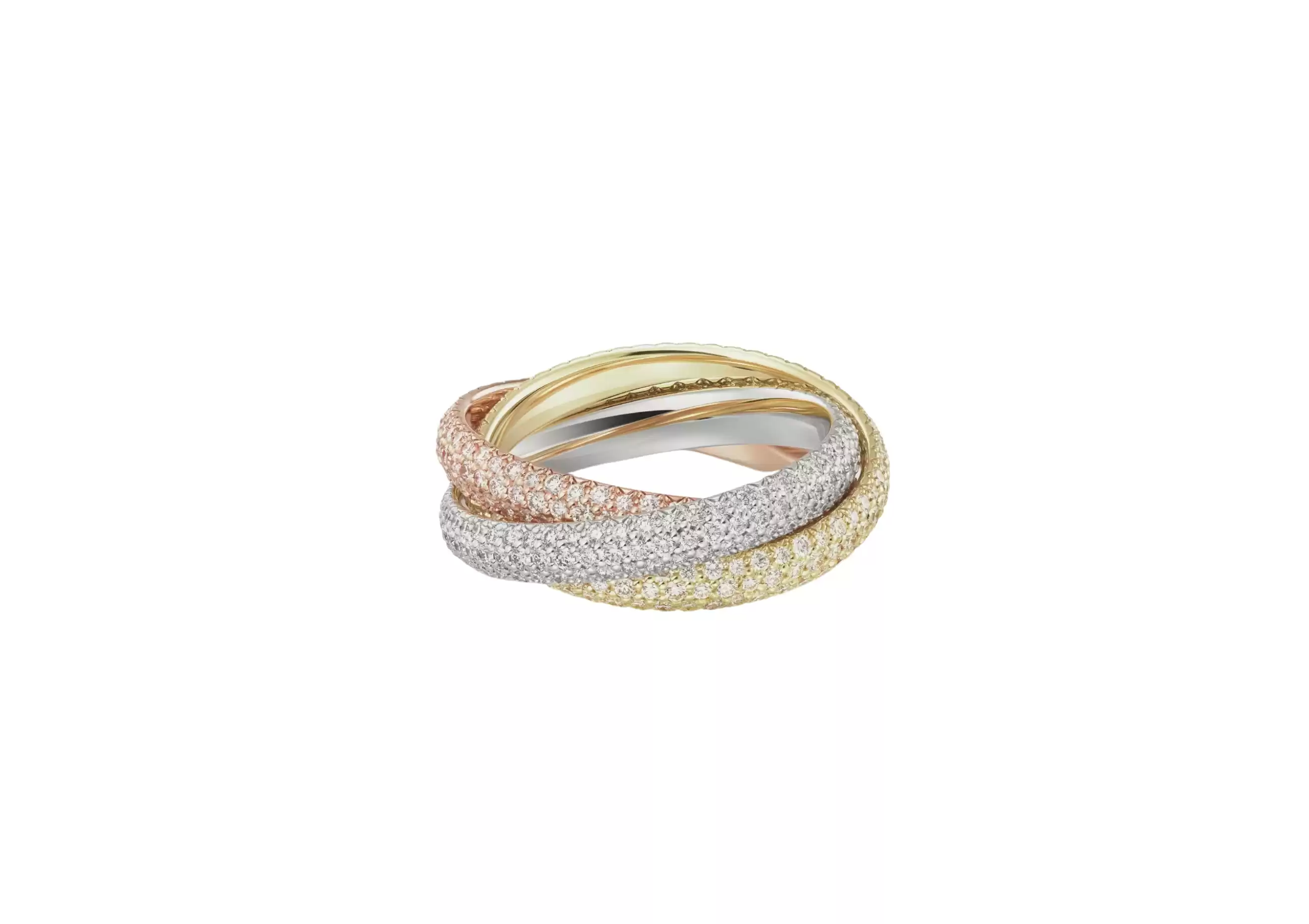 Enhancing its allure, the Trinity ring is adorned with a remarkable array of 312 brilliant-cut diamonds, totaling an impressive 1.38 carats. Each diamond has been carefully selected and skillfully set to radiate an enchanting sparkle, captivating all who behold it.