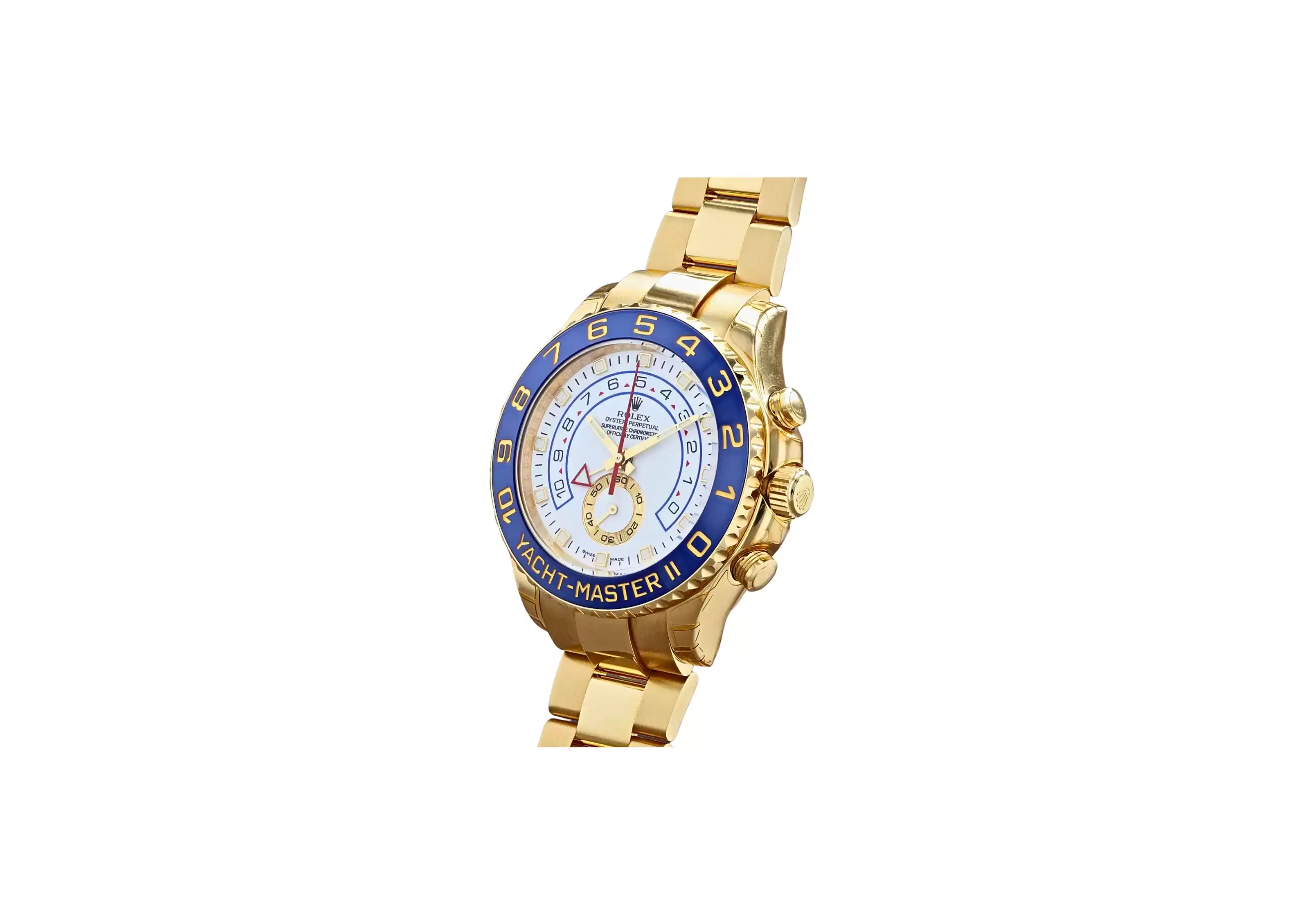 Driven by an automatic movement, this timepiece ensures accurate timekeeping with every tick. Encased in lustrous yellow gold, the Rolex Yacht-Master II exudes a captivating allure that effortlessly catches the eye. The radiant yellow gold bracelet further enhances its opulent appeal, providing a seamless blend of style and comfort.
