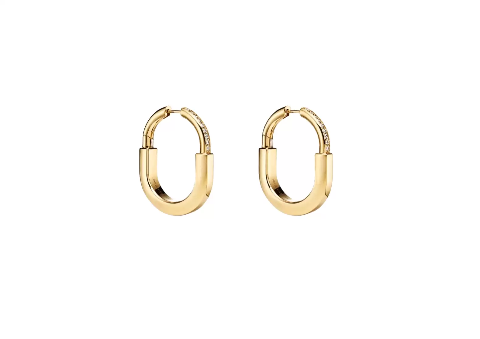 Introducing the Preloved:Tiffany Lock Earrings in Yellow Gold with Diamonds, Medium I 72342771. These exquisite earrings are more than just a piece of jewelry; they embody the essence of unity and inclusivity. Inspired by the power of togetherness, the Tiffany Lock collection celebrates the personal connections that shape our identities.
