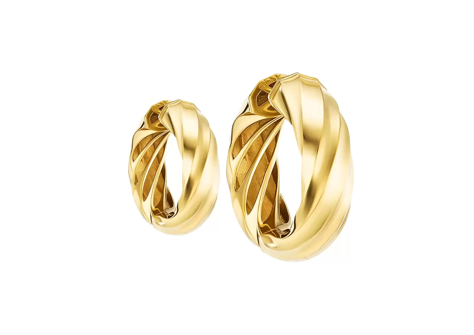 The Cable Edge® design adds a contemporary twist to the classic hoop style, creating a unique and captivating aesthetic. The intricate cable detailing along the edges adds texture and visual interest, elevating these earrings to a whole new level of sophistication.
