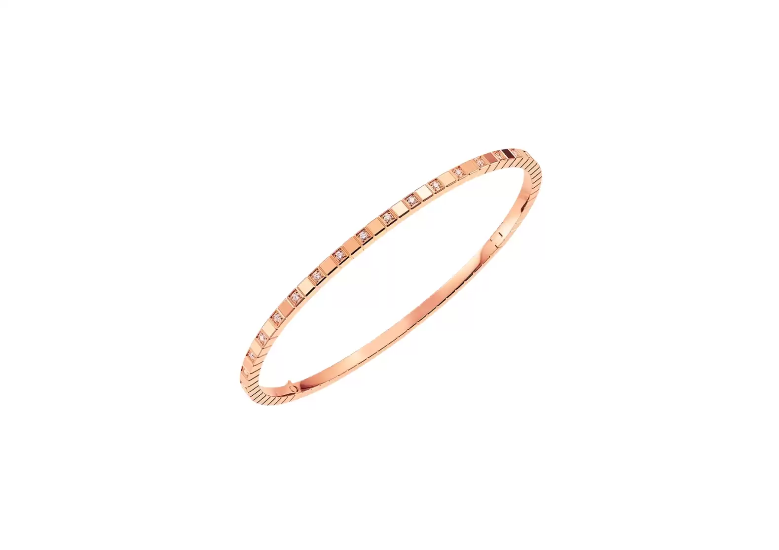 Ever since its launch in 1999, the Ice Cube collection has offered successive interpretations of its modern aesthetic inspired by tiny blocks of ice. Symbolising perfection and miraculous geometry, the cube is a source of inspiration in all creative fields. In selecting this figure, the Ice Cube collection dares to play on its rare nature, its disruptive aesthetic, as well as the infinite glinting flashes of light reflected off its multiple facets. Minimalist Elegance. MetalĀ 18k rose gold and Diamonds CaratĀ 0.33