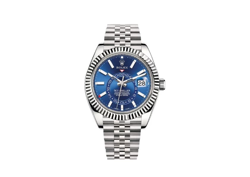 DescriptionThis 2022 unworn Sky-Dweller 42mm is made of polished stainless steel and white gold and is inspired by aviation styles. The baton hands move across the second-timezone dial using an automatic movement. |