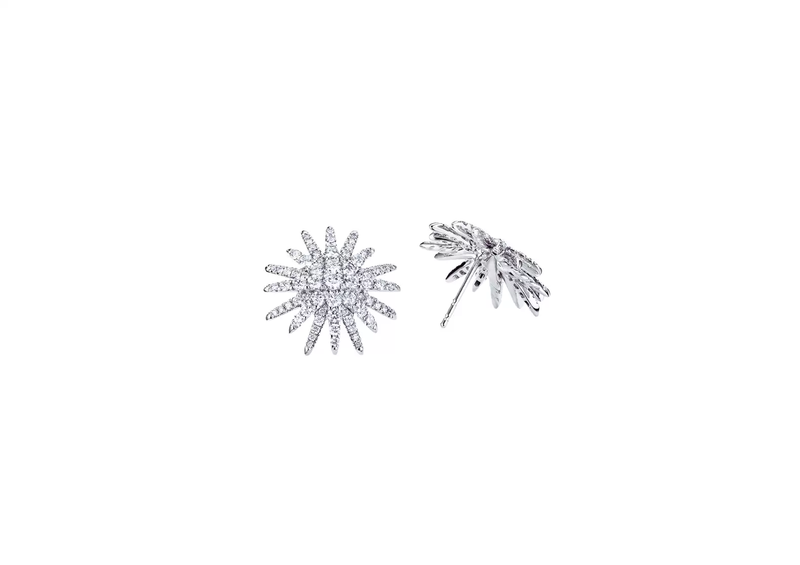 Meticulously crafted from 18-karat white gold, these earrings boast a radiant shine that effortlessly complements any ensemble. The dazzling starburst design is adorned with pavé-set diamonds, totaling an impressive 1.76 carats. Each diamond is carefully selected for its exceptional quality and brilliance, ensuring a captivating sparkle that will catch everyone's eye.
