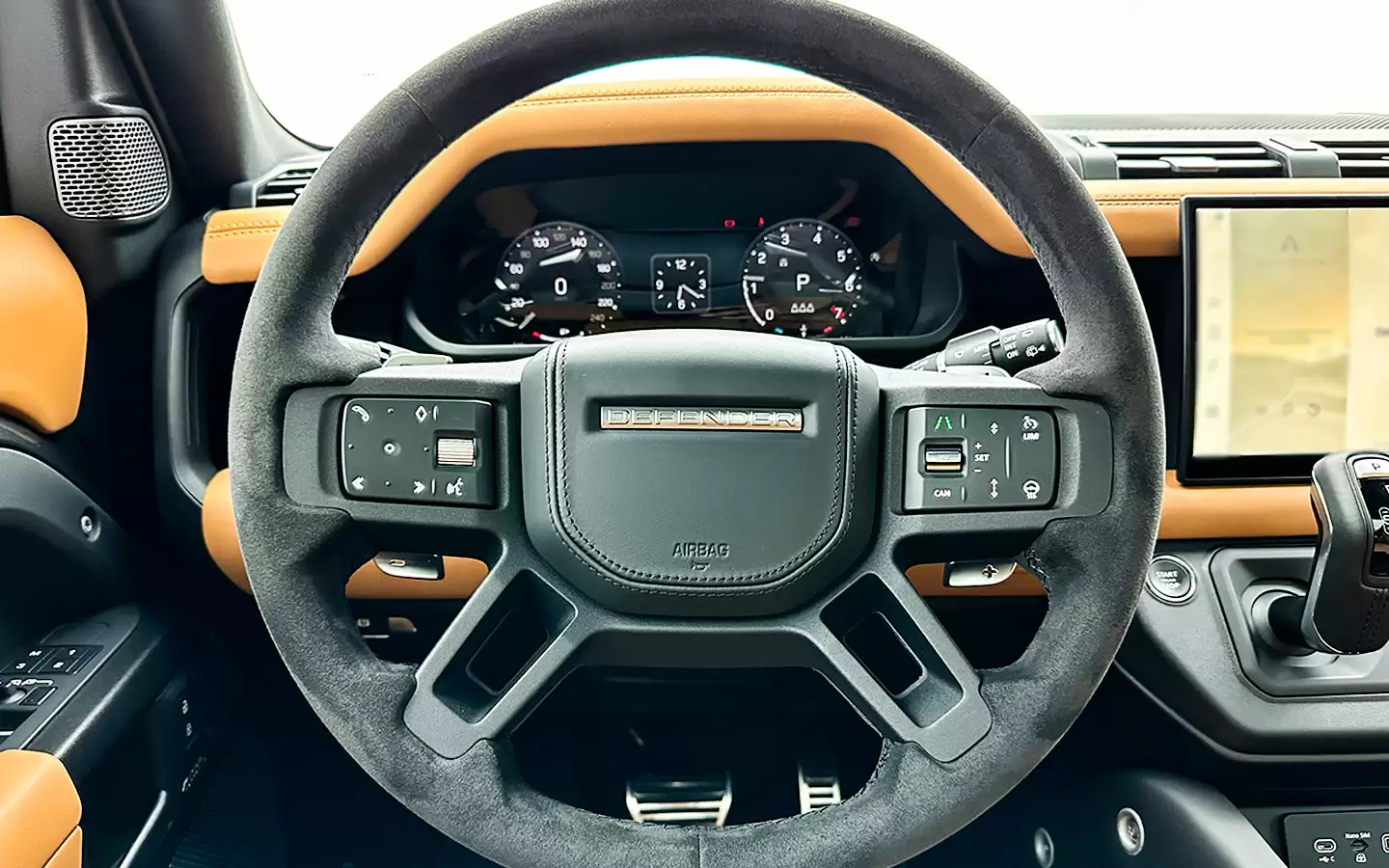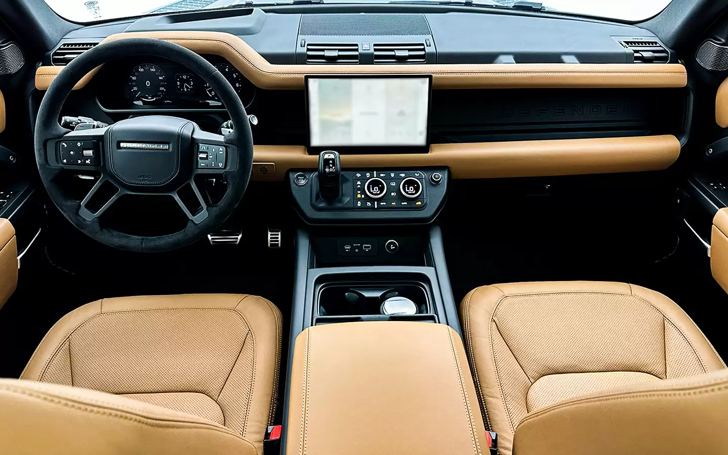 Step inside the Defender 110 Carpathian Edition and be greeted by the luxurious Vintage Tan interior. This combination of comfort and style creates an inviting and premium atmosphere, ensuring a pleasurable ride for both driver and passengers.