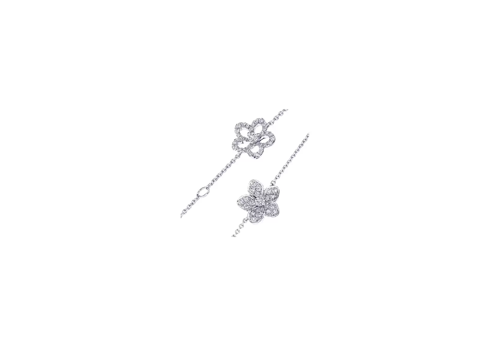 Introducing the Preloved: Wild Flower Pavé Diamond Bracelet in White Gold, a masterpiece that encapsulates the beauty of nature in its most captivating form. This exquisite bracelet features four diamond flowers, each meticulously crafted to perfection, showcasing a level of detail that is truly unparalleled.