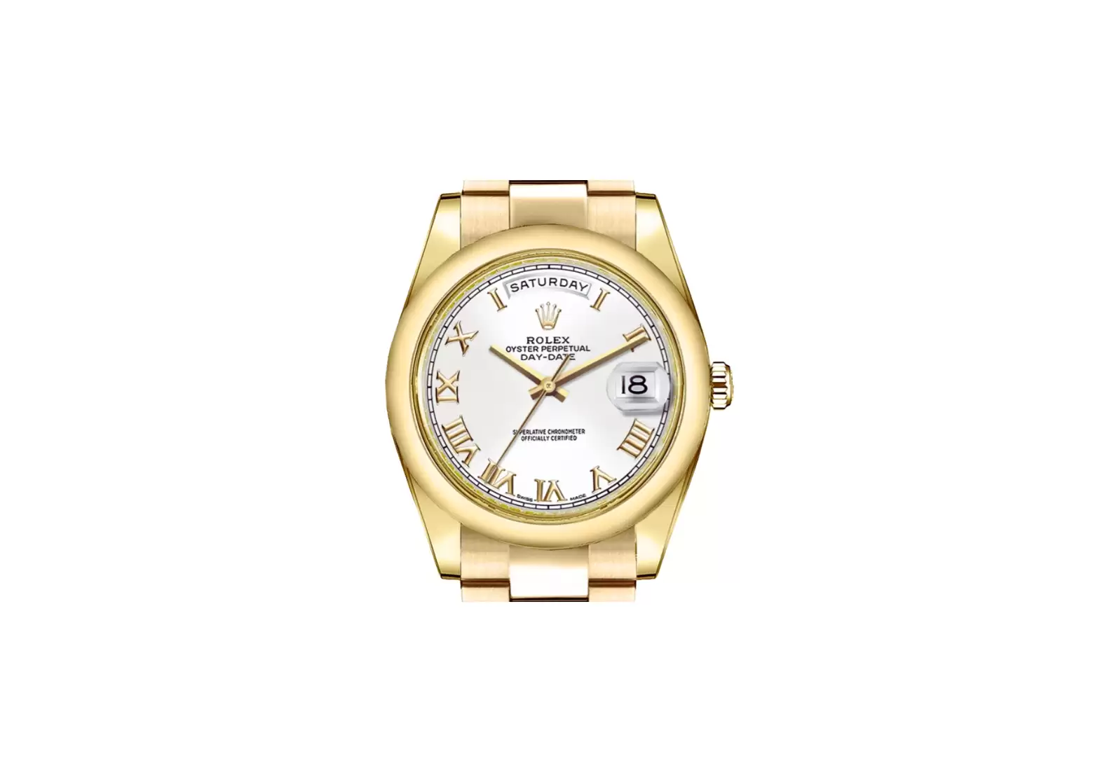 Introducing the Pre-owned Rolex Day-Date 36 White Roman Numeral Yellow Gold Watch 118208-0087, a timepiece that exudes sophistication and excellence. Crafted with utmost precision, this luxurious watch is a true testament to Rolex's commitment to quality.