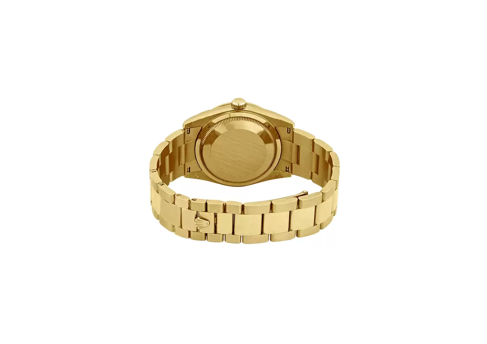 The 18k yellow gold case sets the stage for elegance, while the classic domed bezel adds a touch of timeless charm. The oyster bracelet, featuring a deployment buckle, not only enhances the watch's aesthetic appeal but also ensures a secure and comfortable fit on your wrist.