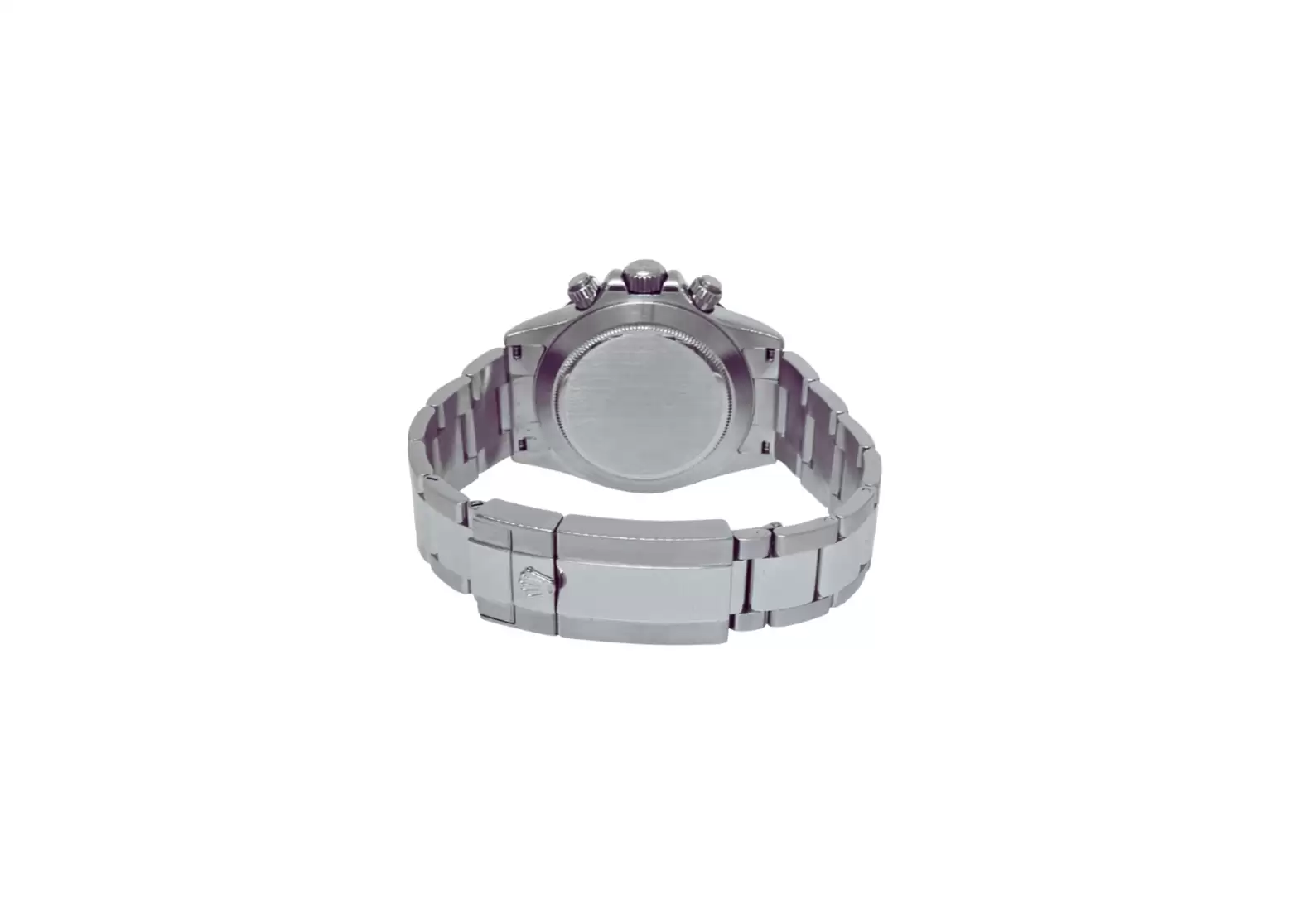 Crafted with precision and attention to detail, this Rolex Cosmograph Daytona features a sleek black dial adorned with index hour markers, providing a striking contrast against the stainless steel bezel. The chronograph feature adds functionality, with a large central chronograph second hand, a 30-minute counter sub-dial at 3 o'clock, and a 12-hour counter sub-dial at 9 o'clock. The small second sub-dial at 6 o'clock adds a touch of elegance.