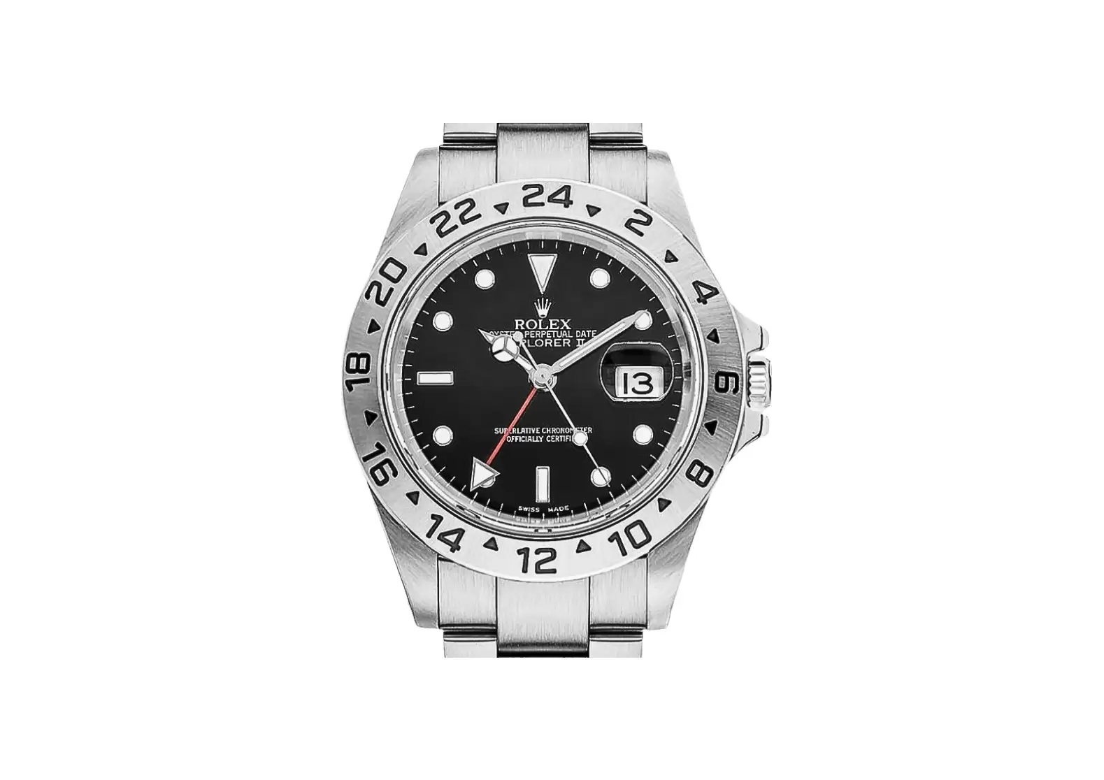 Introducing the Pre-owned Rolex Explorer II Black Dial 40mm Oystersteel Men's Watch 16570. This luxury timepiece is a true masterpiece, crafted with precision and elegance.